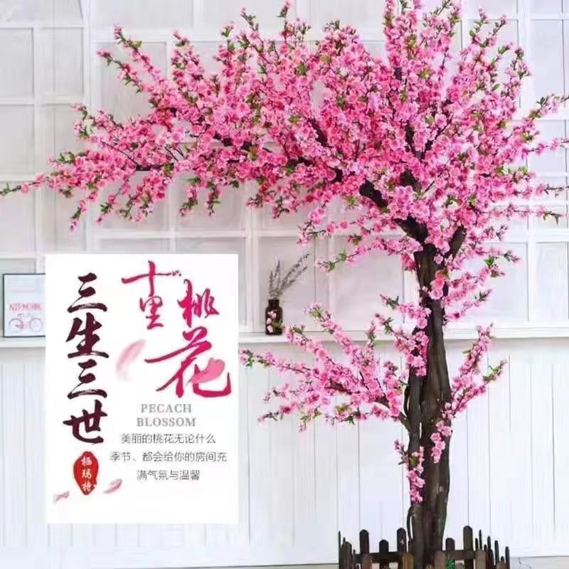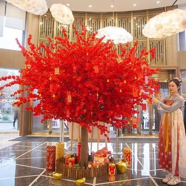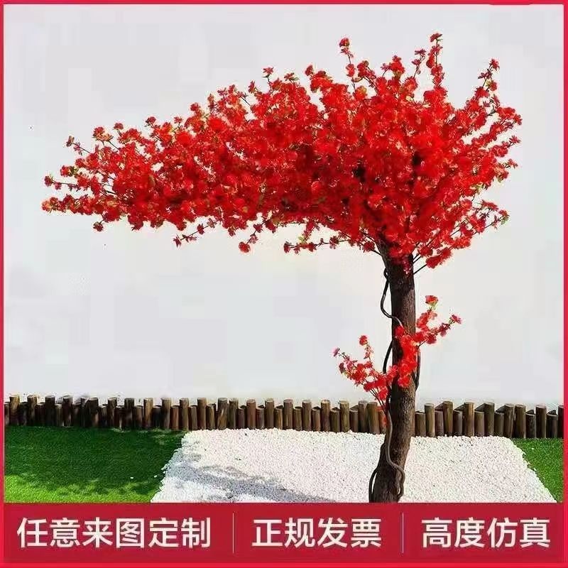 仿真桃花树许愿树红色桃花树假桃树网红打卡背景墙新年商场装饰