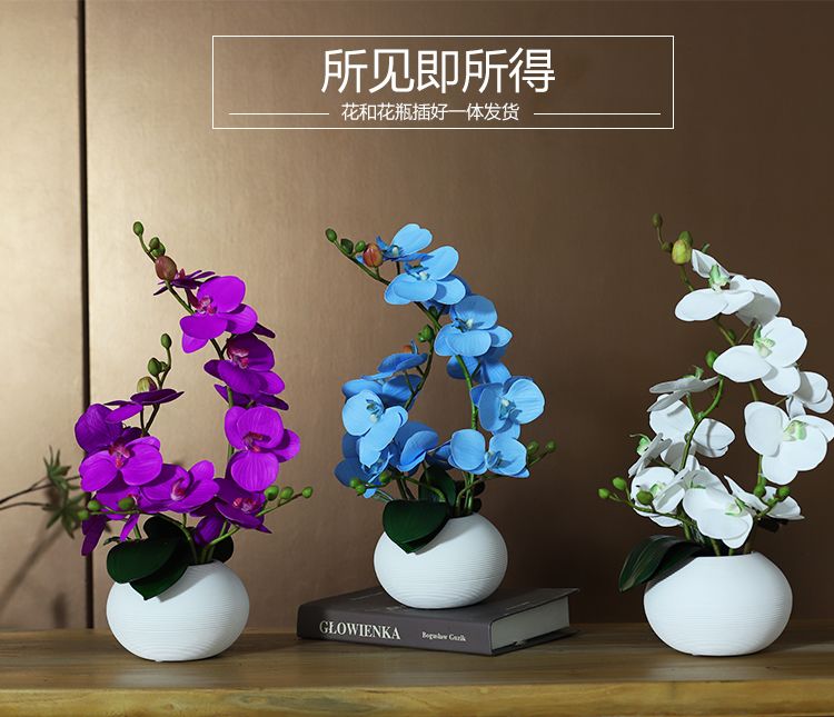 花艺蝴蝶兰仿真花陶瓷盆栽套装家居电视柜装饰客厅摆放花餐桌摆件
