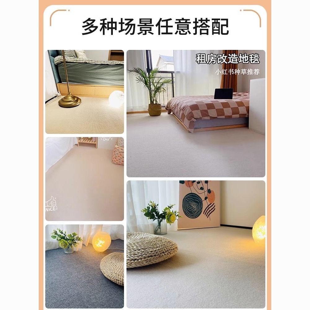 卧室房间客厅奶油风拍照地毯米白色商用租房大面积全铺地垫办公室