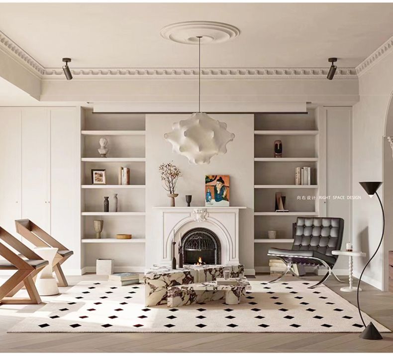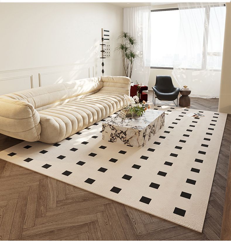 法式地毯客厅侘寂风北欧极简轻奢地毯卧室高级现代简约棋盘格地毯