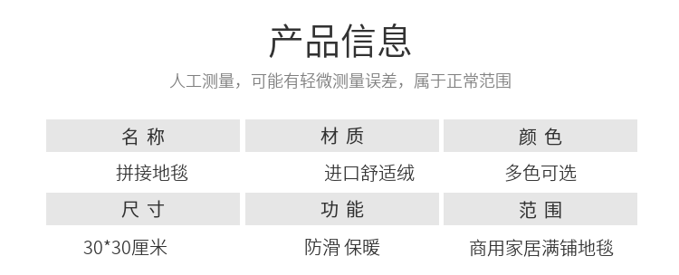 | 30 pieces (30*30cm per piece)(三十片装(每片30*30厘米)) | USD $13.8 | 99999 piece available |