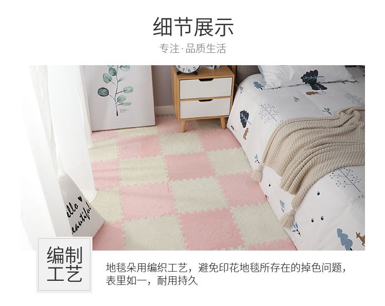 北欧风卧室地垫少女房间全铺拼接地毯床边毯满铺客厅大面积毛绒垫