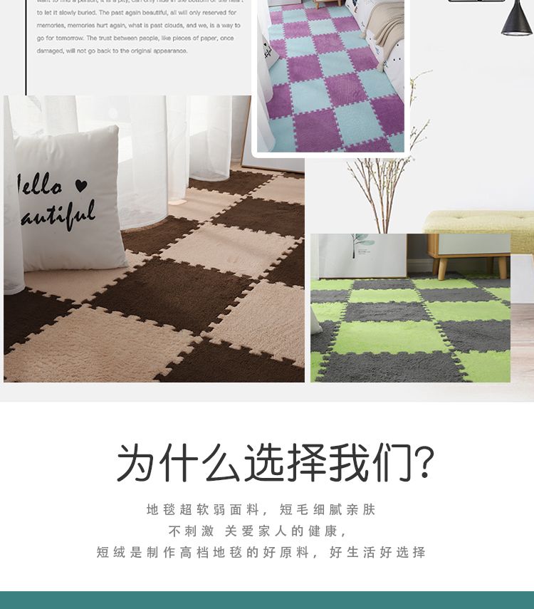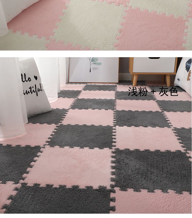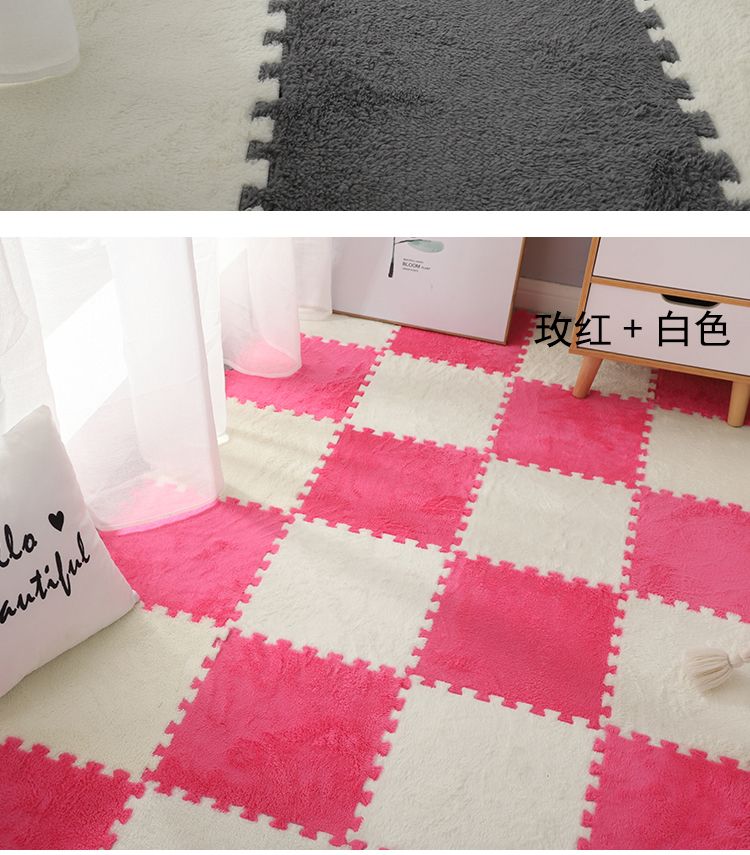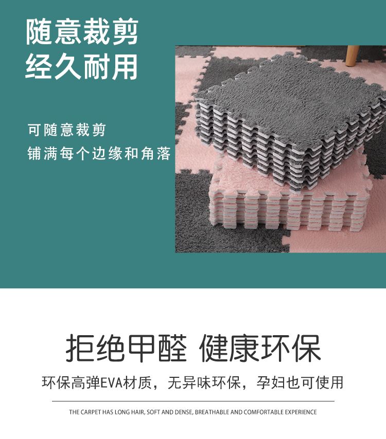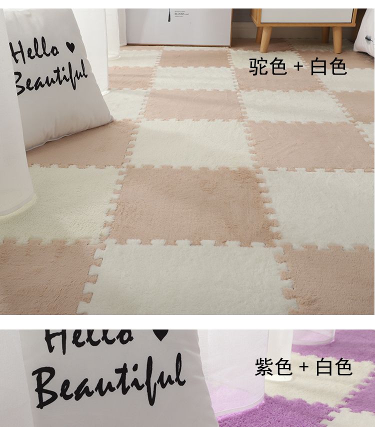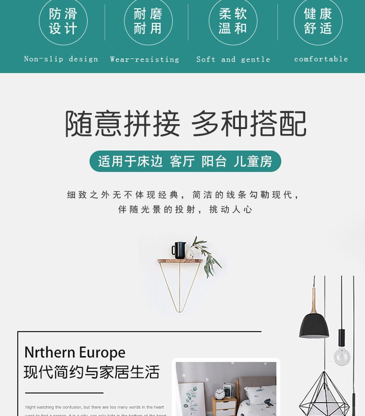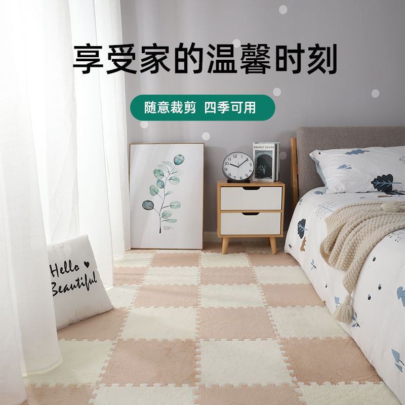 北欧风卧室地毯少女房间家用拼接地垫床边毯客厅满铺大面积毛绒垫