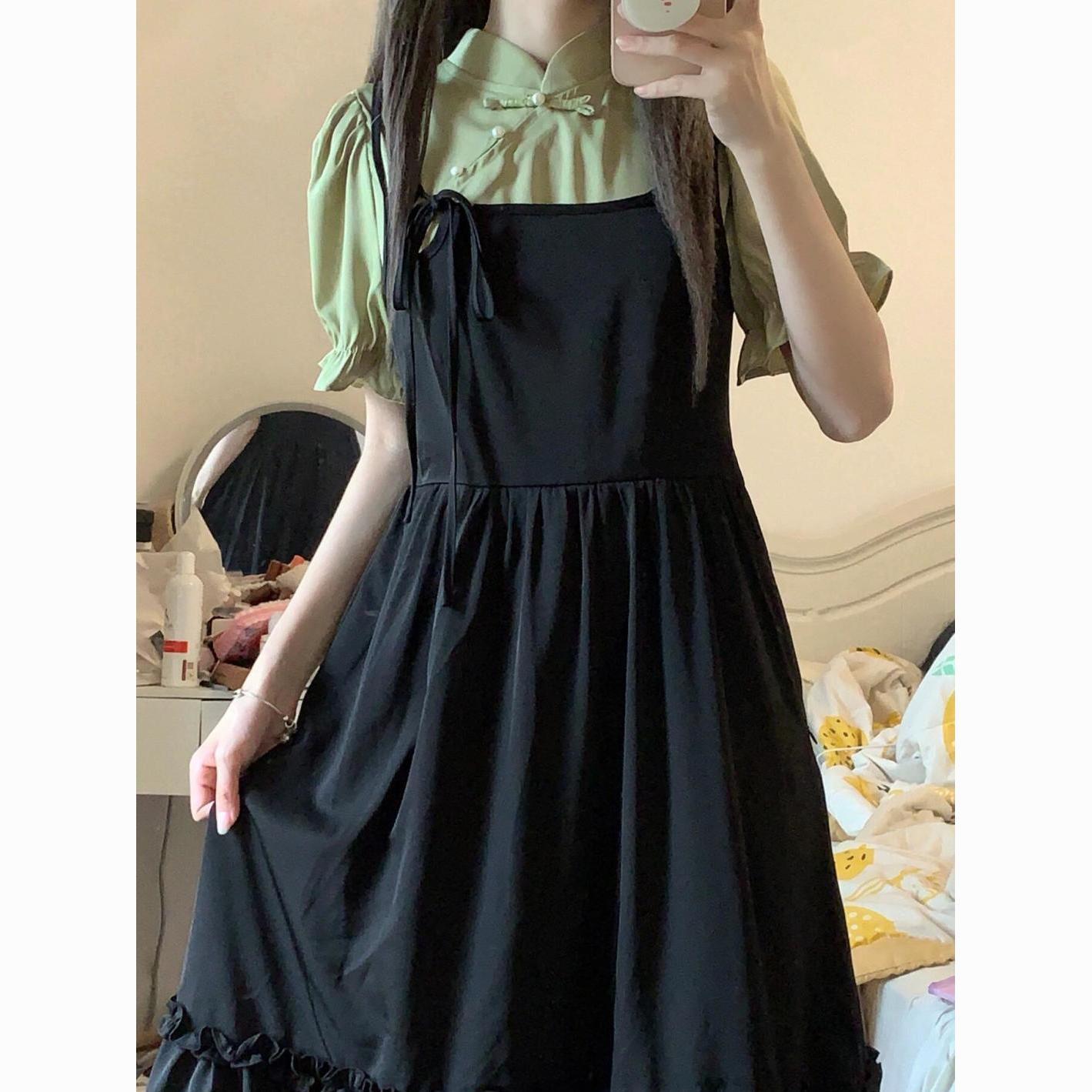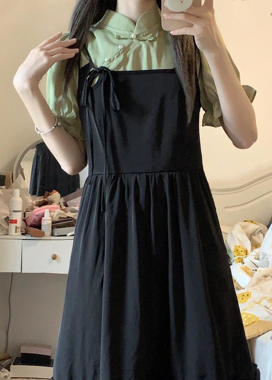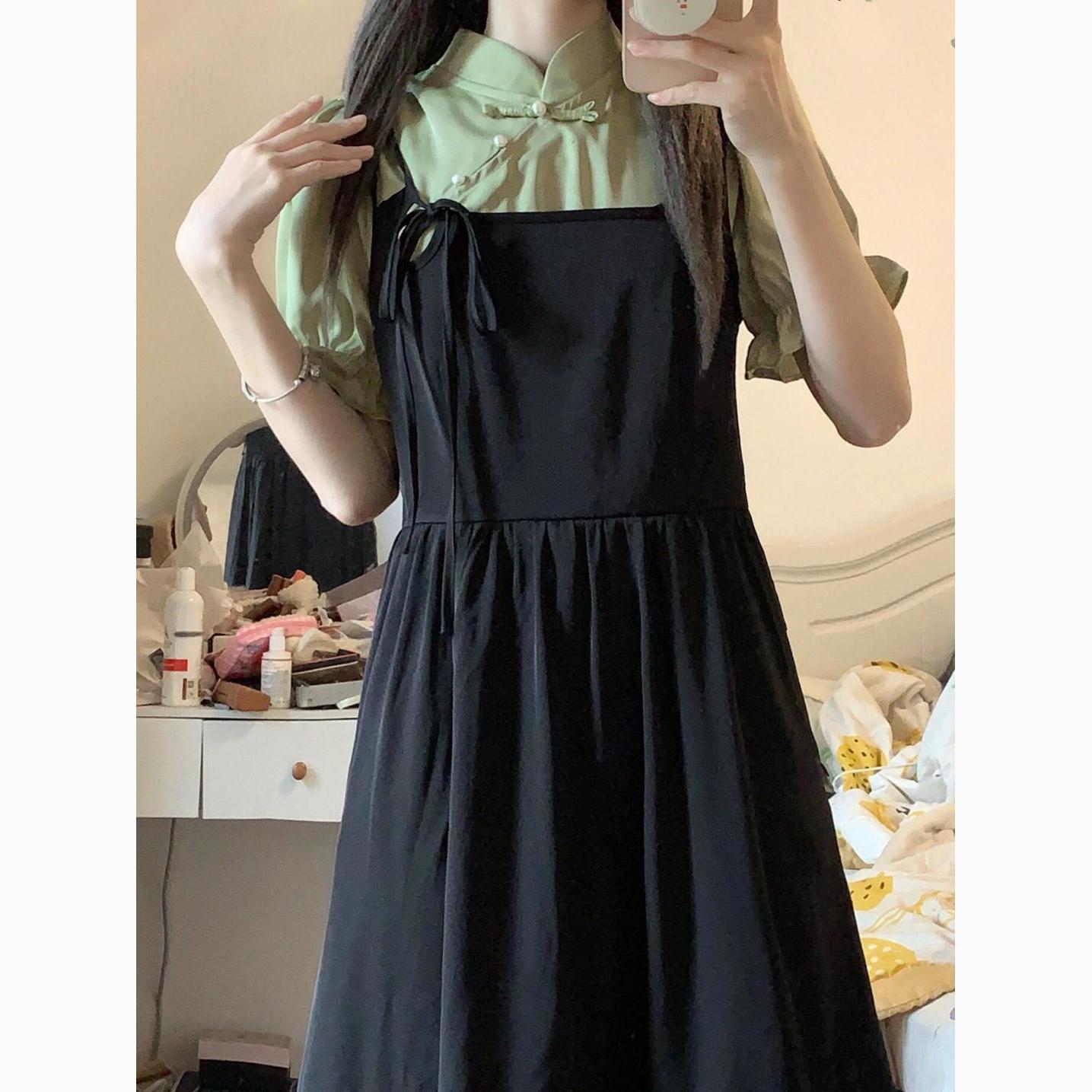 DUANMUZI夏季立领盘扣新中式国风小个子收腰显瘦拼接假两件连衣裙