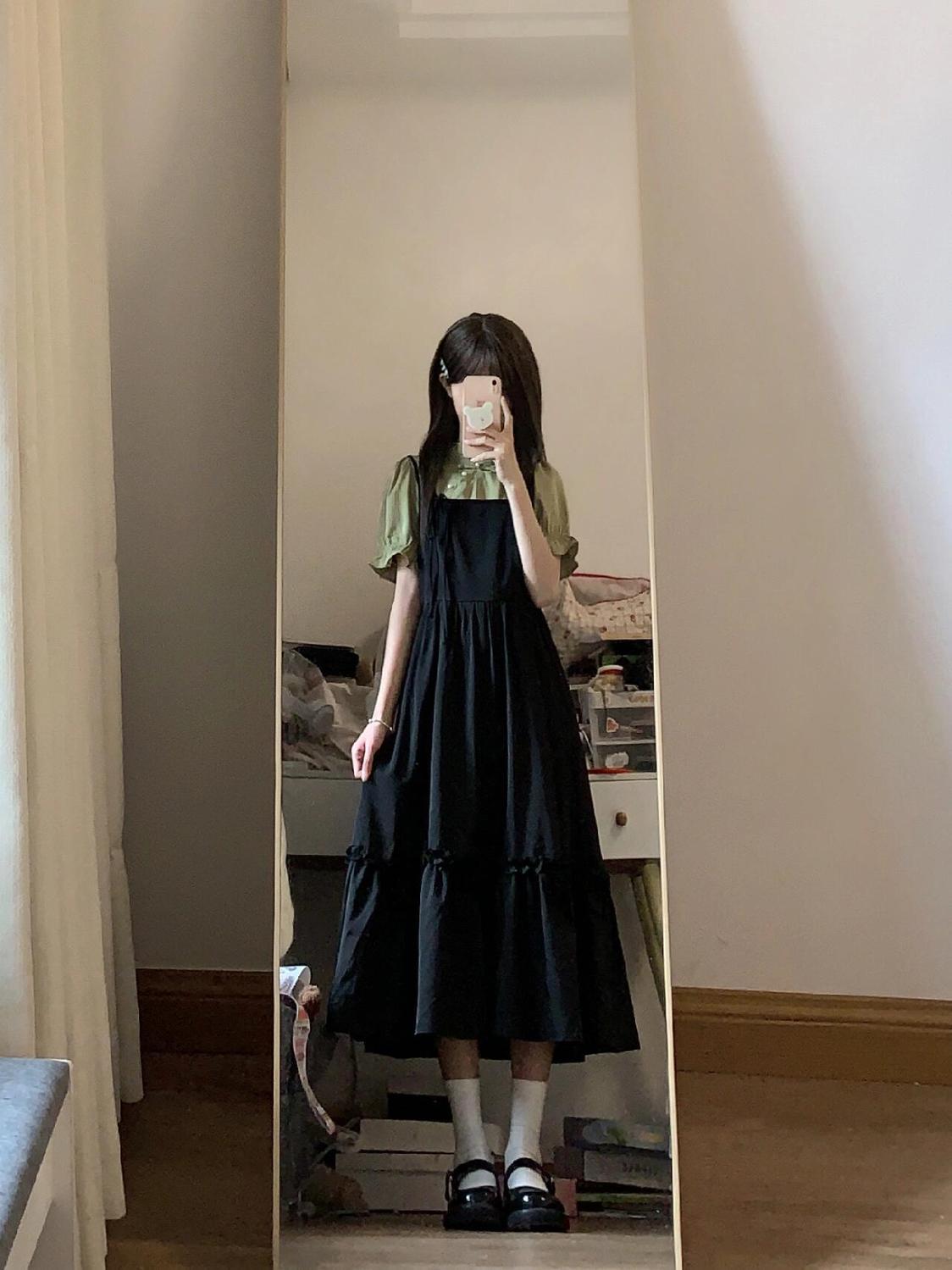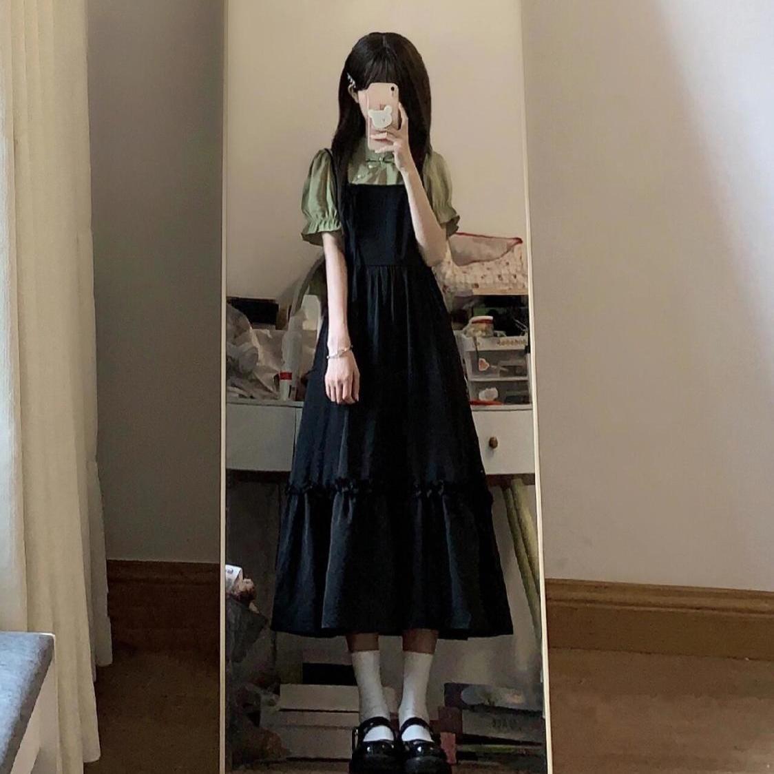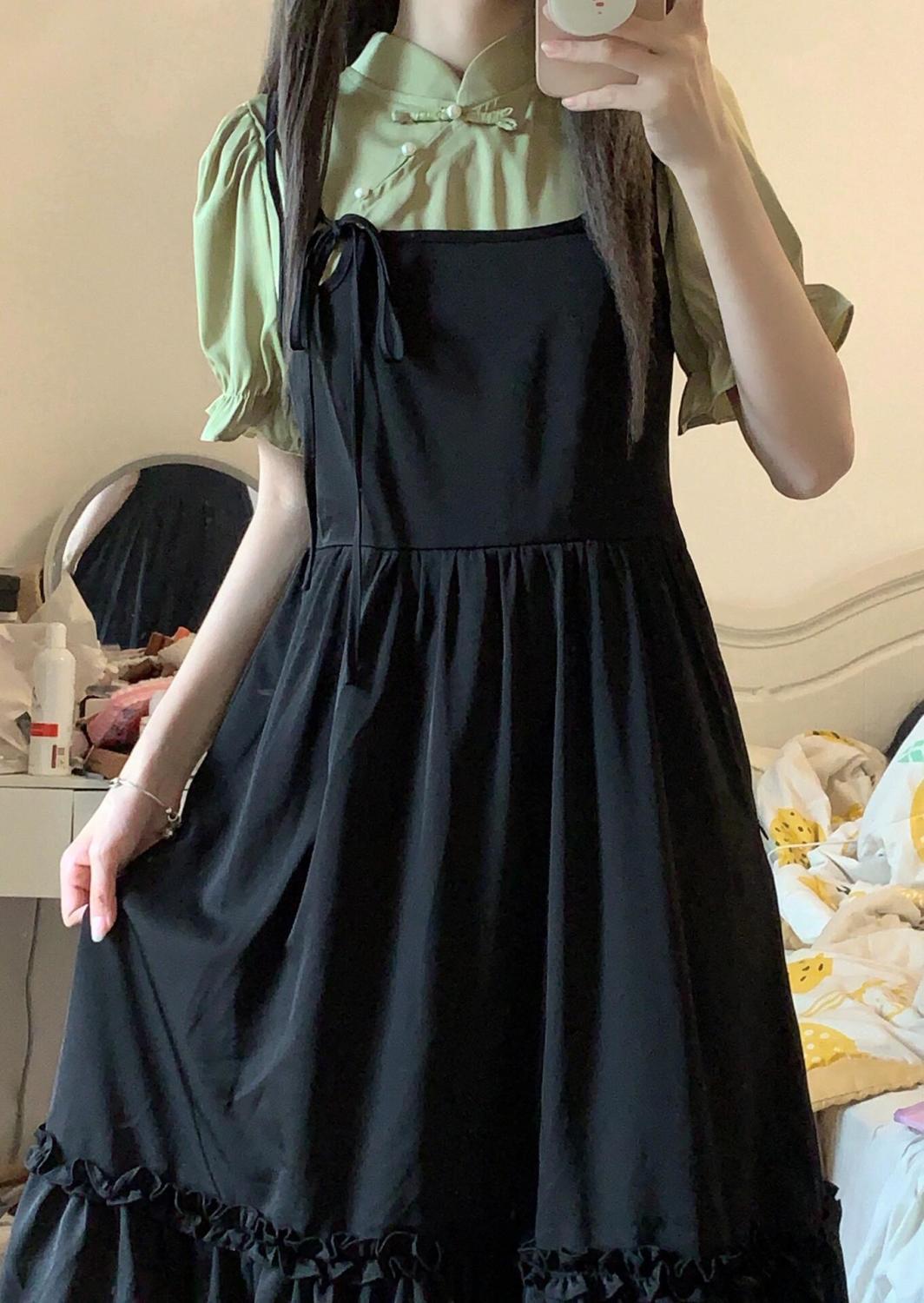 DUANMUZI夏季立领盘扣新中式国风小个子收腰显瘦拼接假两件连衣裙