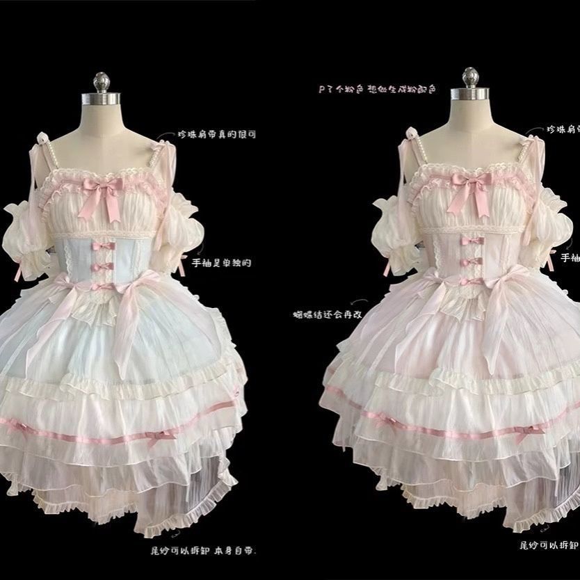 | pink and green jsk + oversleeves + tail yarn (get aircraft box free)(粉绿色jSK+手袖+尾纱(送飞机盒)) | USD $32.56 | 99999 piece available |