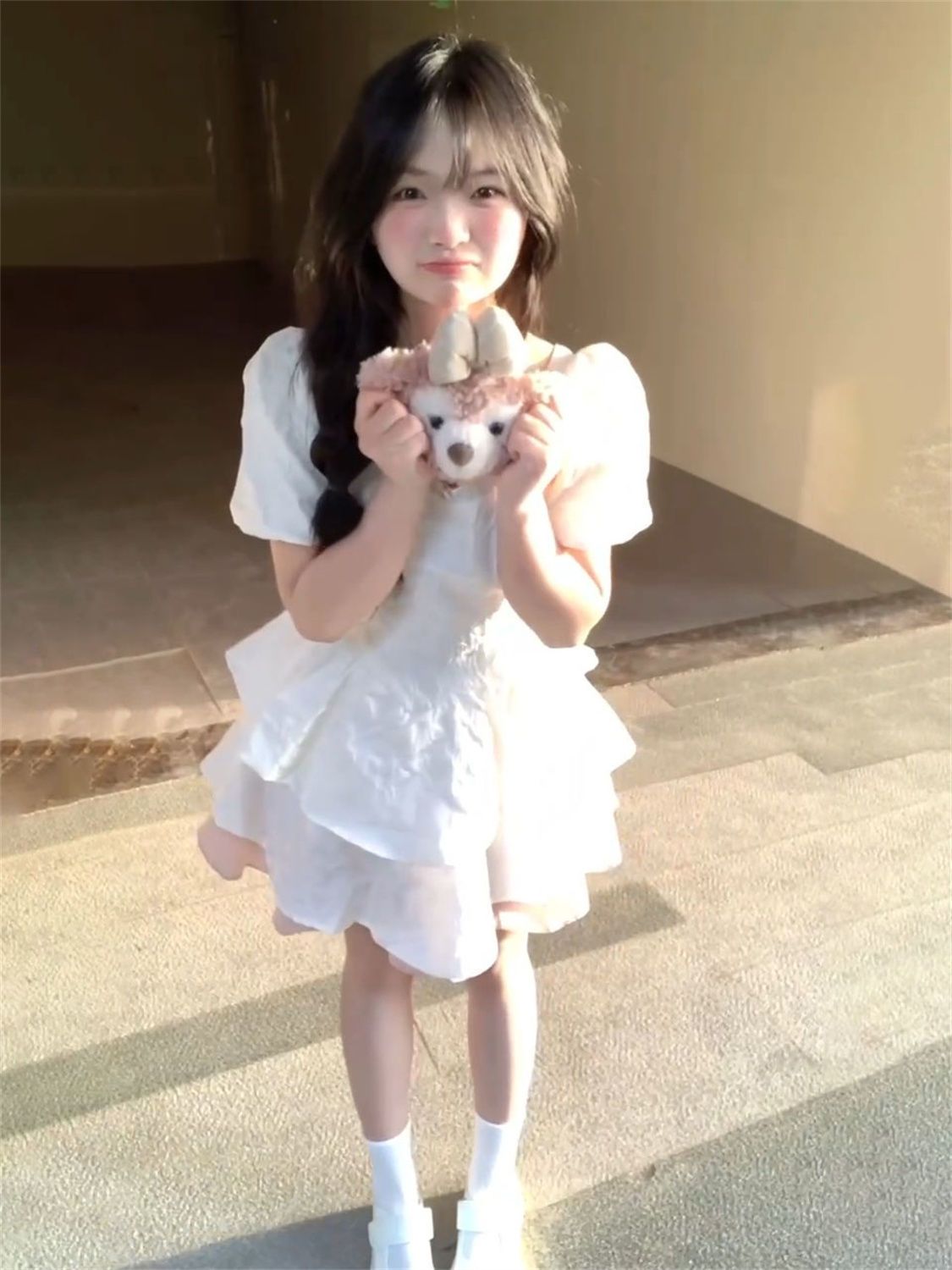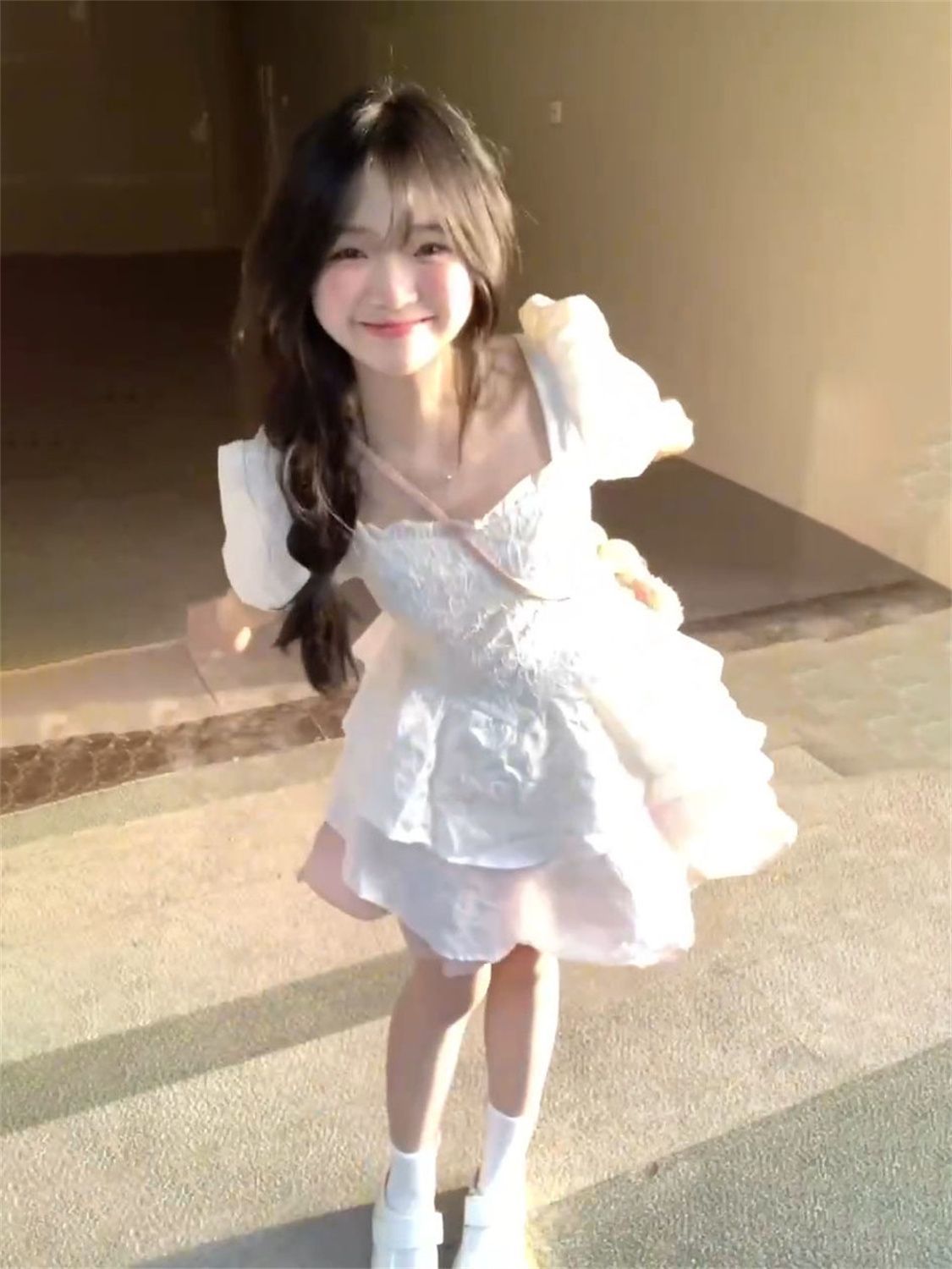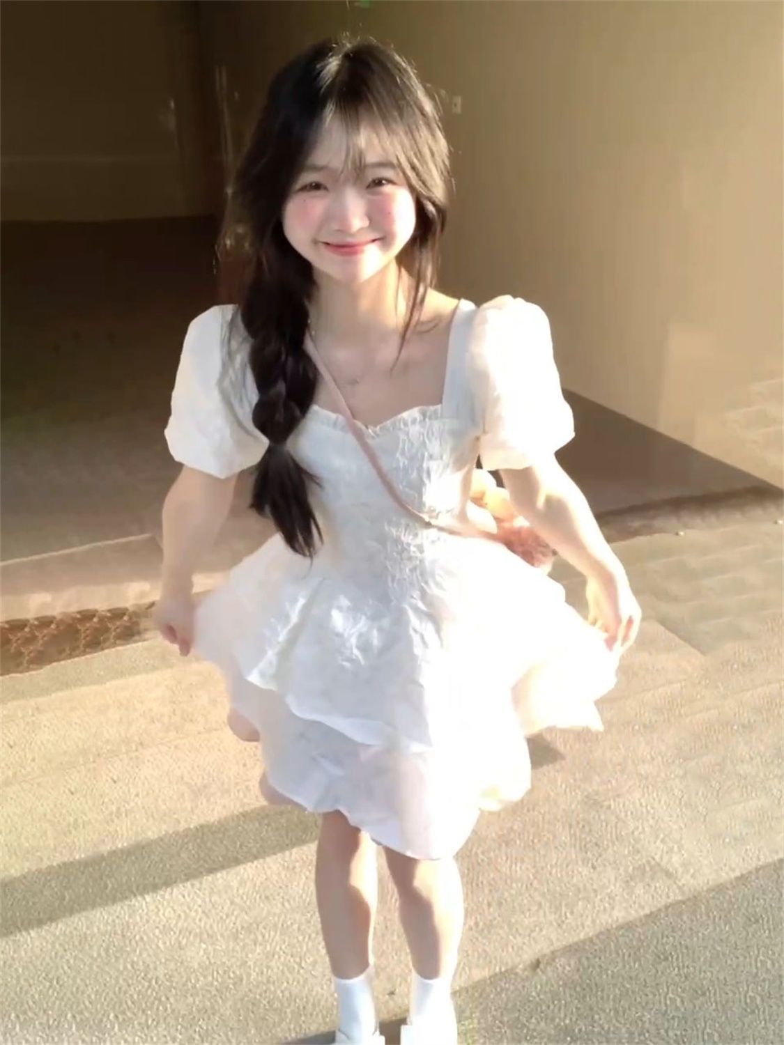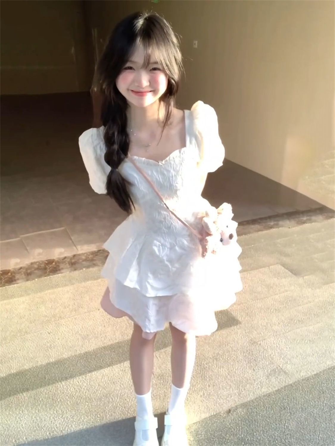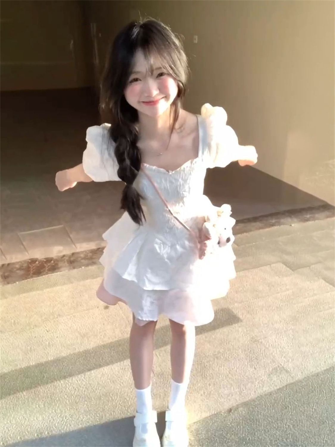 YISHI 甜美可爱系带收腰背后蝴蝶结连衣裙女学生夏新款公主蓬蓬裙