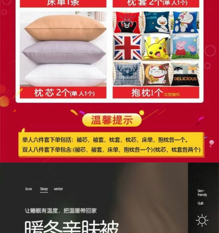 | 1.5x2m single dormitory 3.00kg winter quilt six-piece set(1.5x2m单人宿舍6斤冬季被六件套) | USD $21.36 | 99999 piece available |