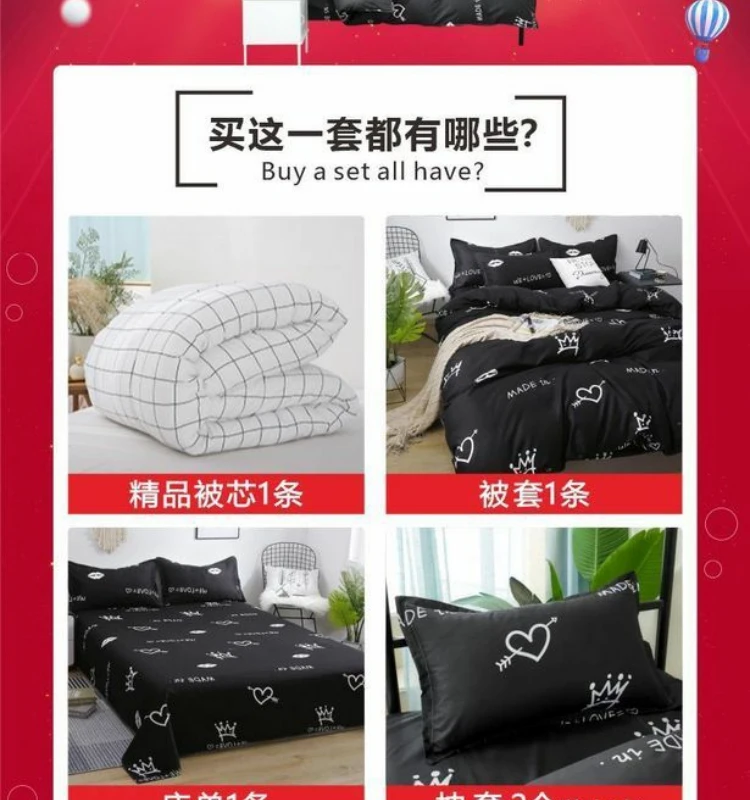 | 1.5x2m single dormitory 1.50kg spring quilt six-piece set(1.5x2m单人宿舍3斤春季被六件套) | USD $18.02 | 99999 piece available |