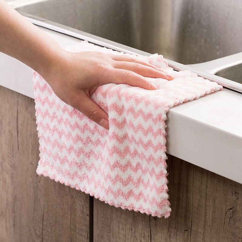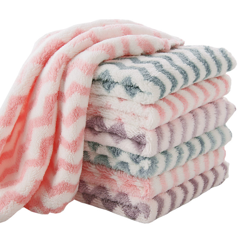 条纹珊瑚绒擦手巾抹布 厨房清洁巾懒人抹布 洗碗布去油百洁布批发