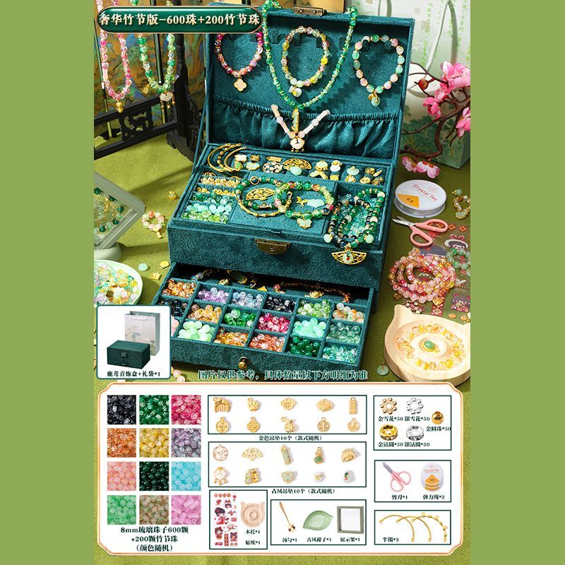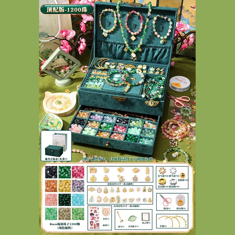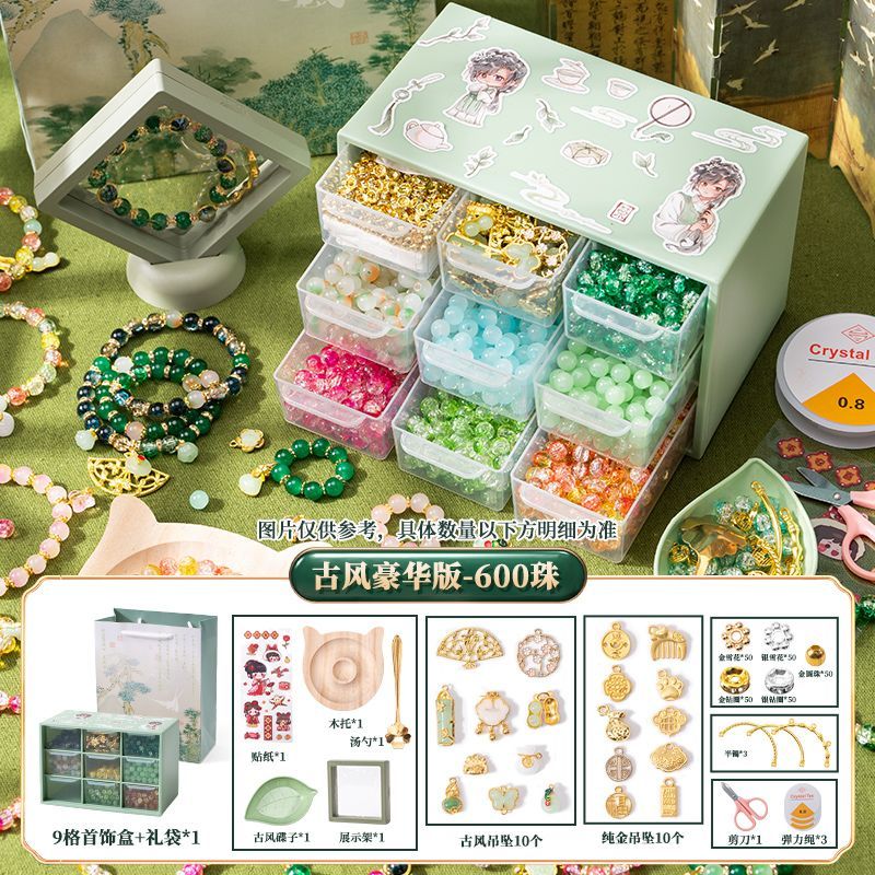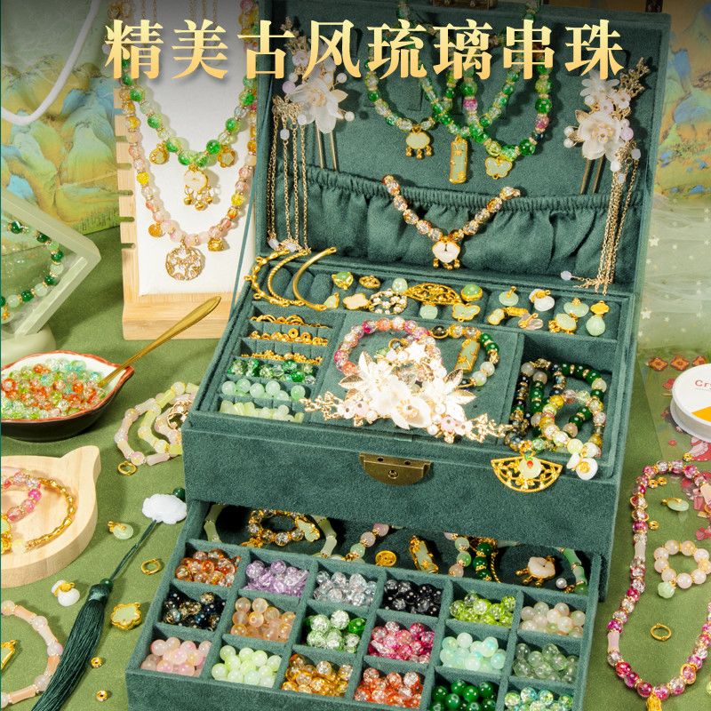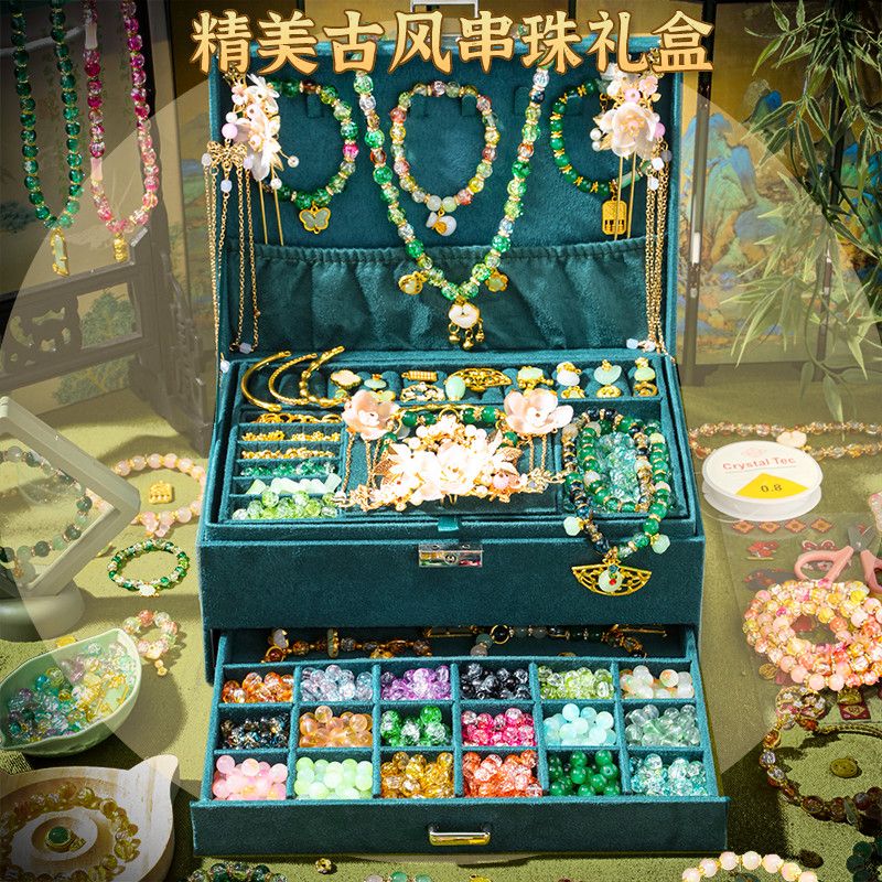 女孩diy手链串珠礼盒手工材料玩具琉璃穿珠子古风首饰盒生日礼物