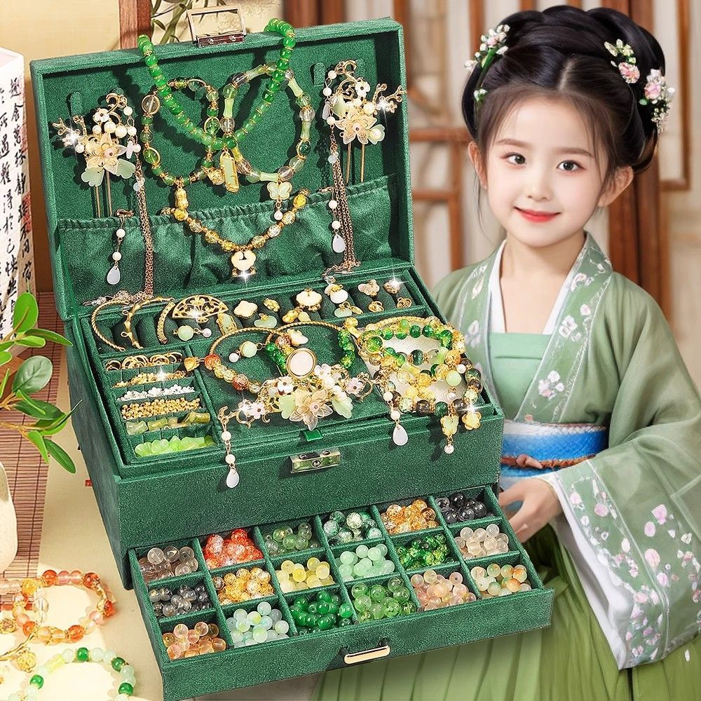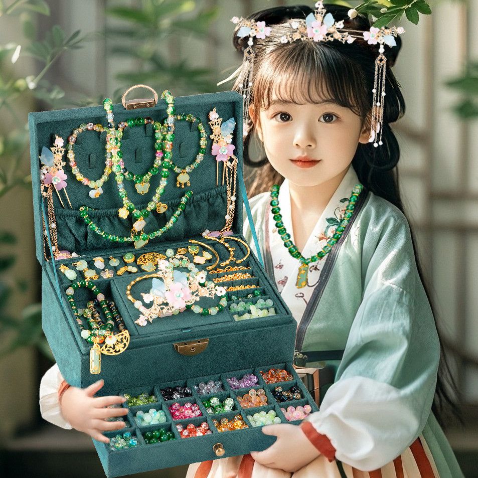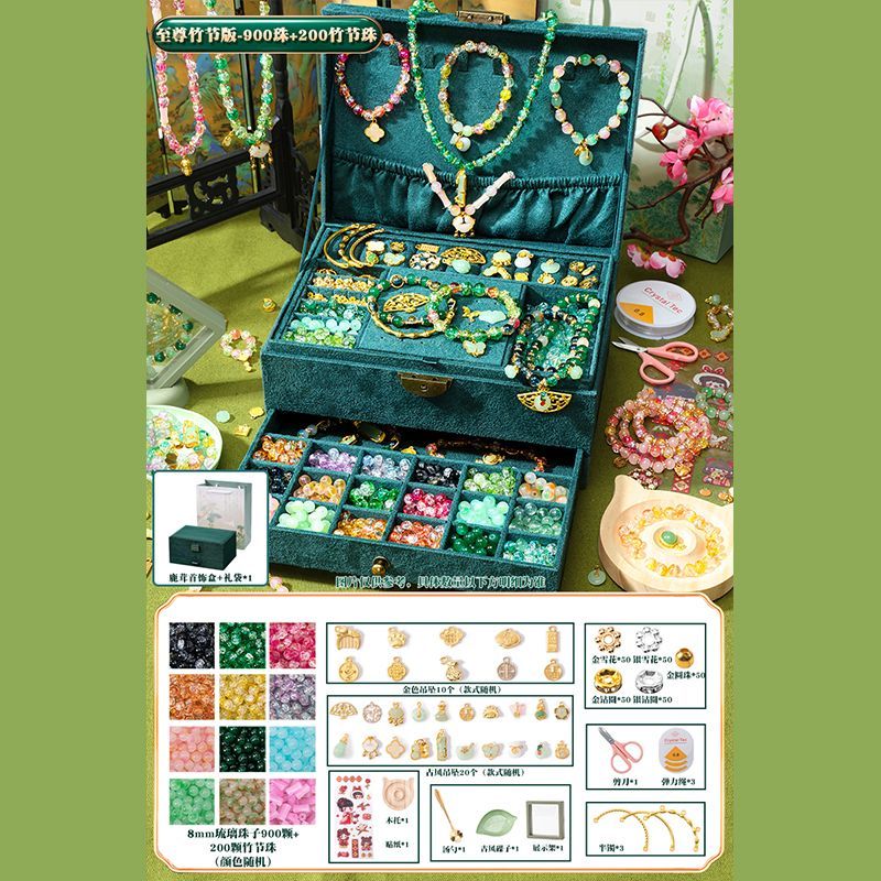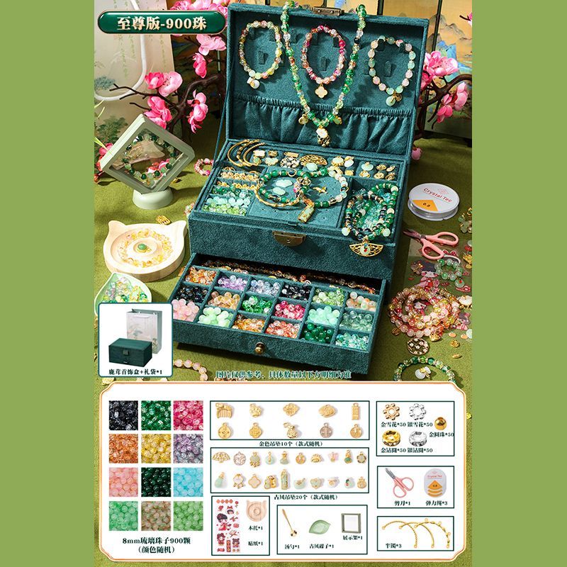 女孩diy手链串珠礼盒手工材料玩具琉璃穿珠子古风首饰盒生日礼物