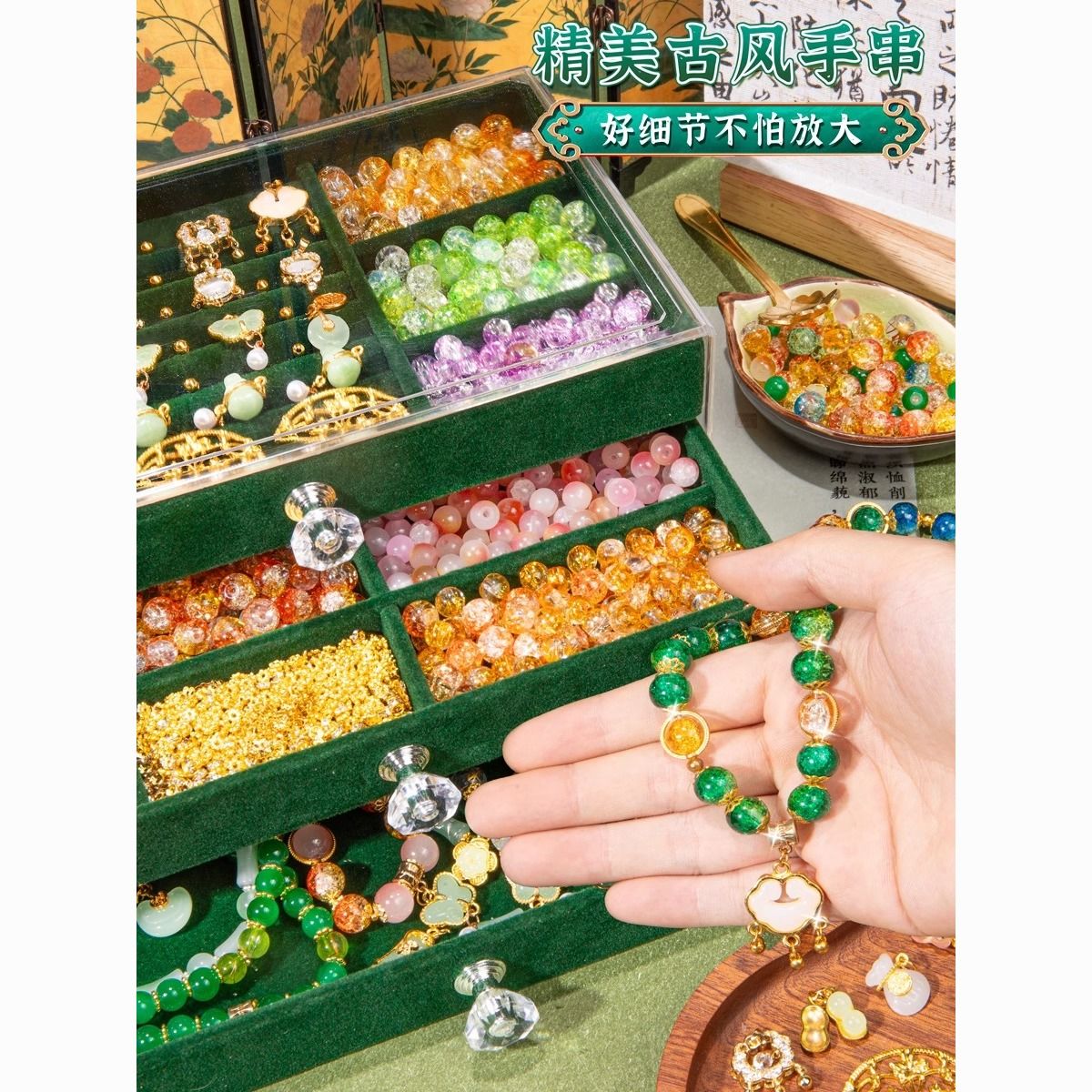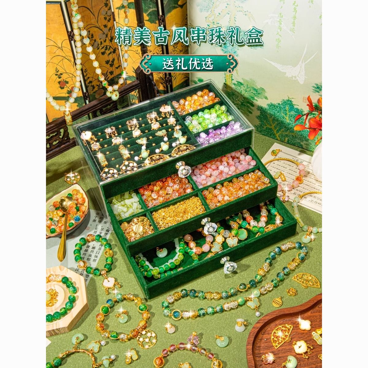 网红国风手链串珠手工diy材料玩具女孩子生日礼物礼盒首饰盒套装6