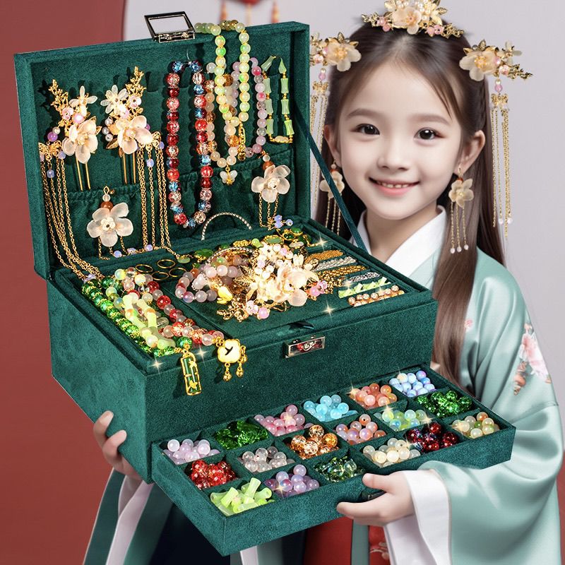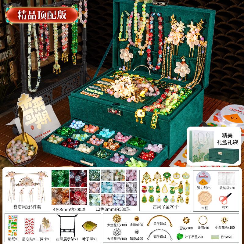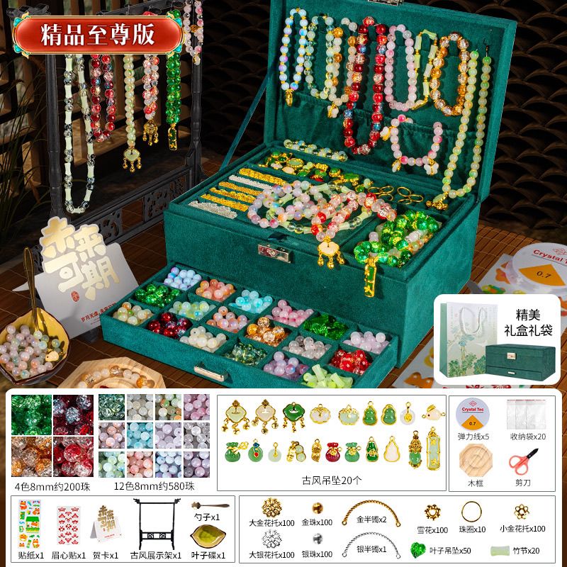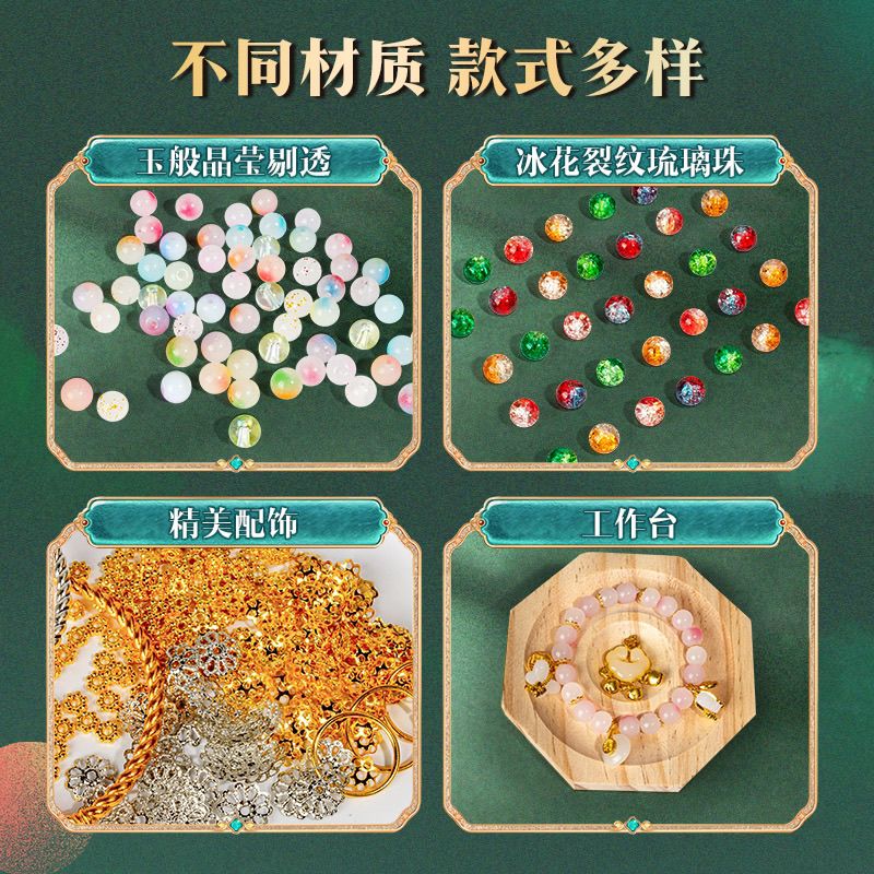 儿童手链串珠手工diy制作材料女孩玩具首饰盒琉璃国风礼盒礼物3-6