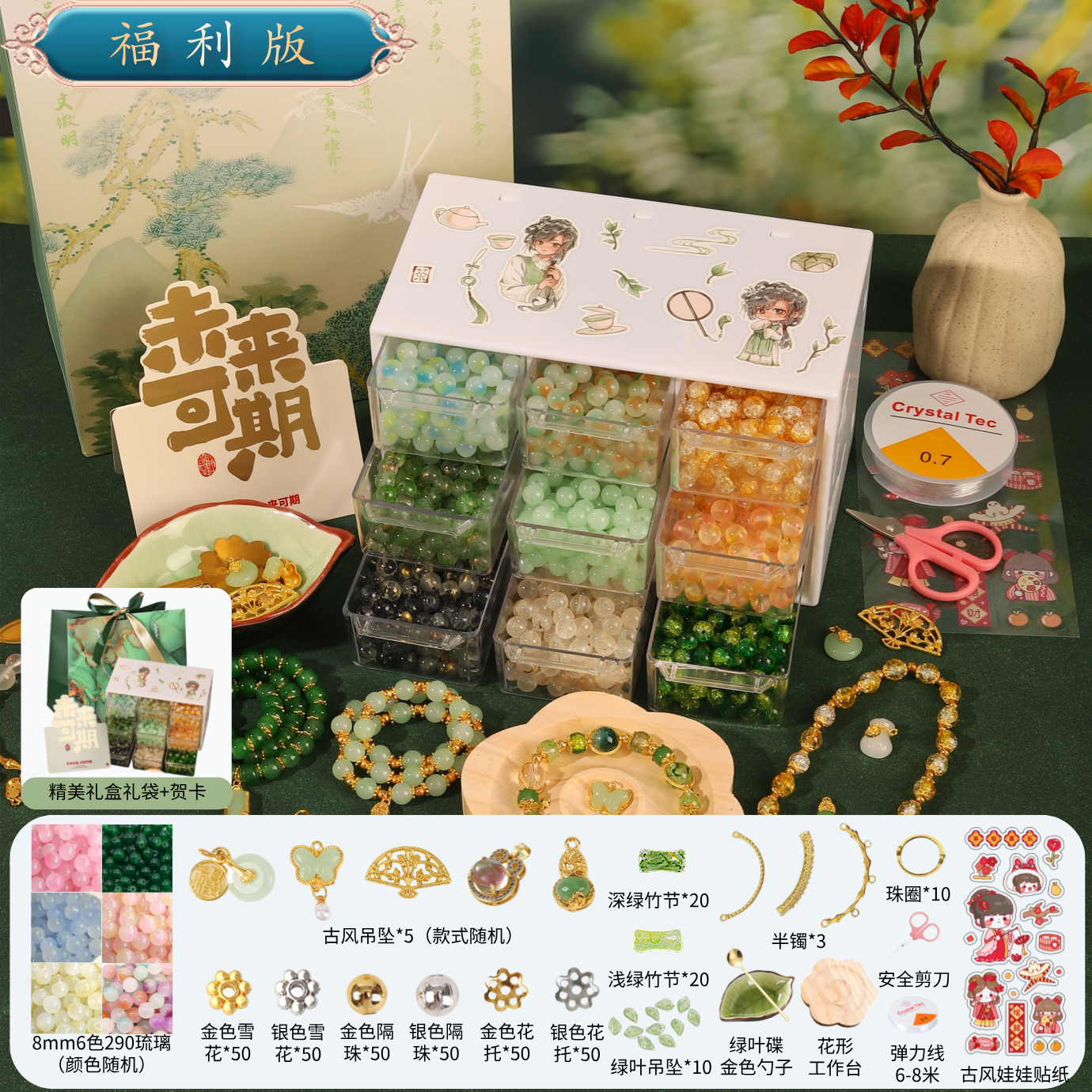 手链串珠儿童手工diy材料女孩古风首饰盒琉璃手串礼盒女生穿珠子8