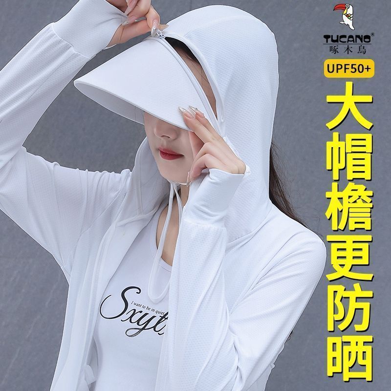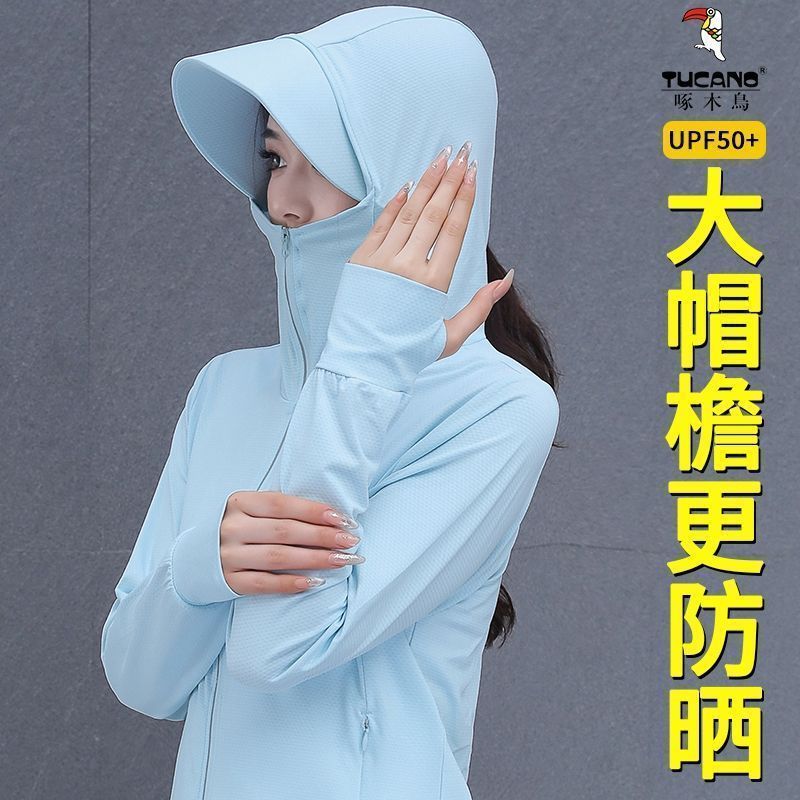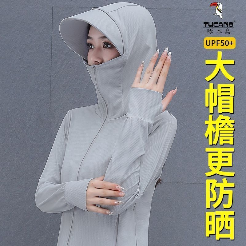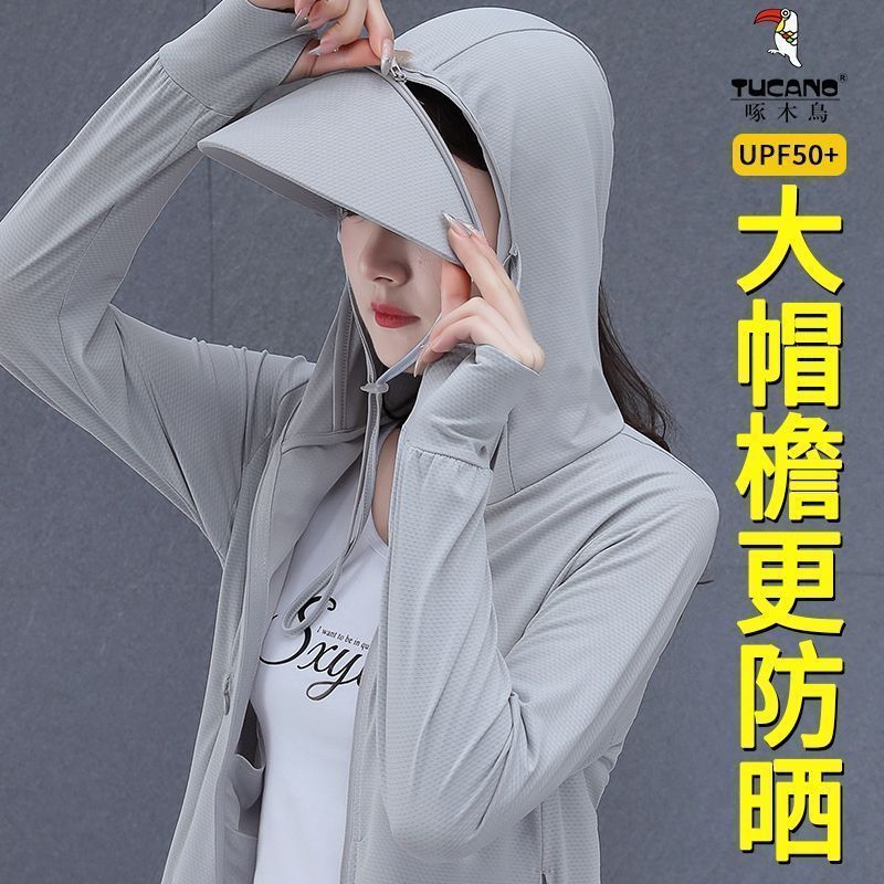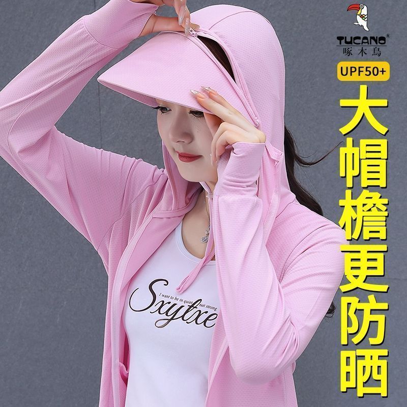 啄木鸟UPF50+冰丝大帽檐可拆卸男女款防晒衣轻薄款透气防晒服外套