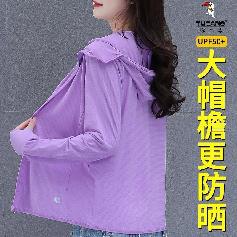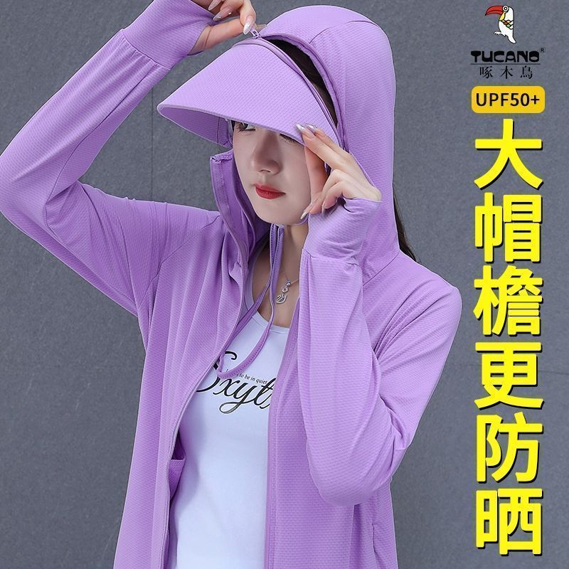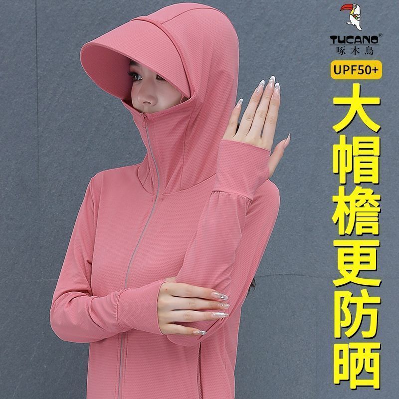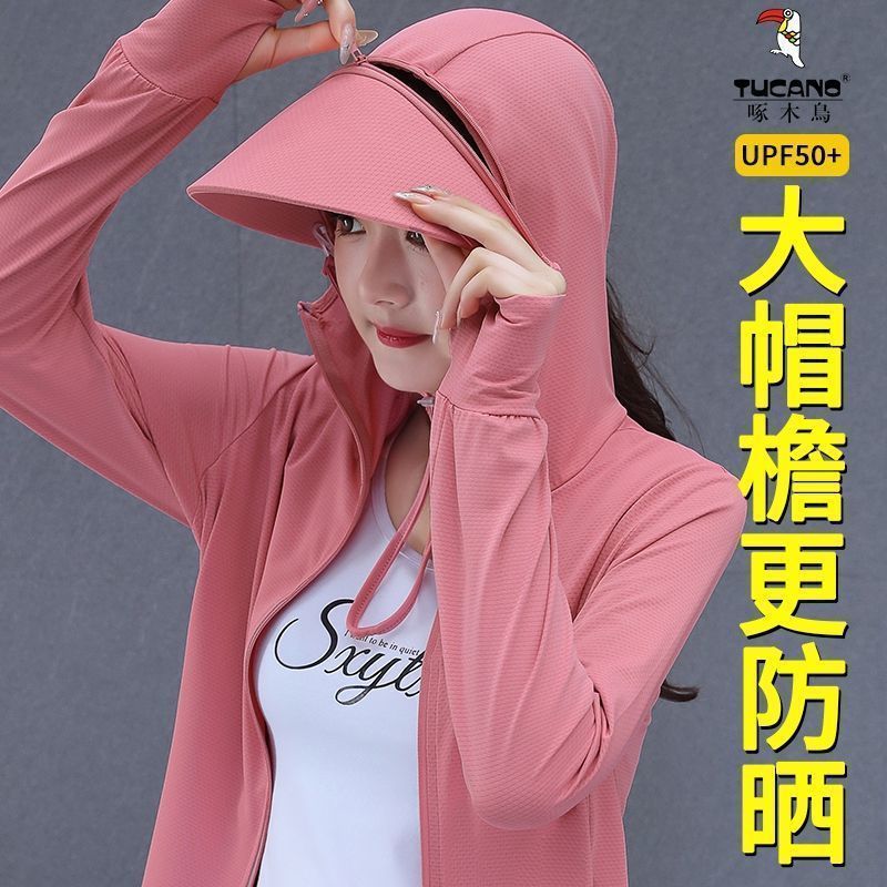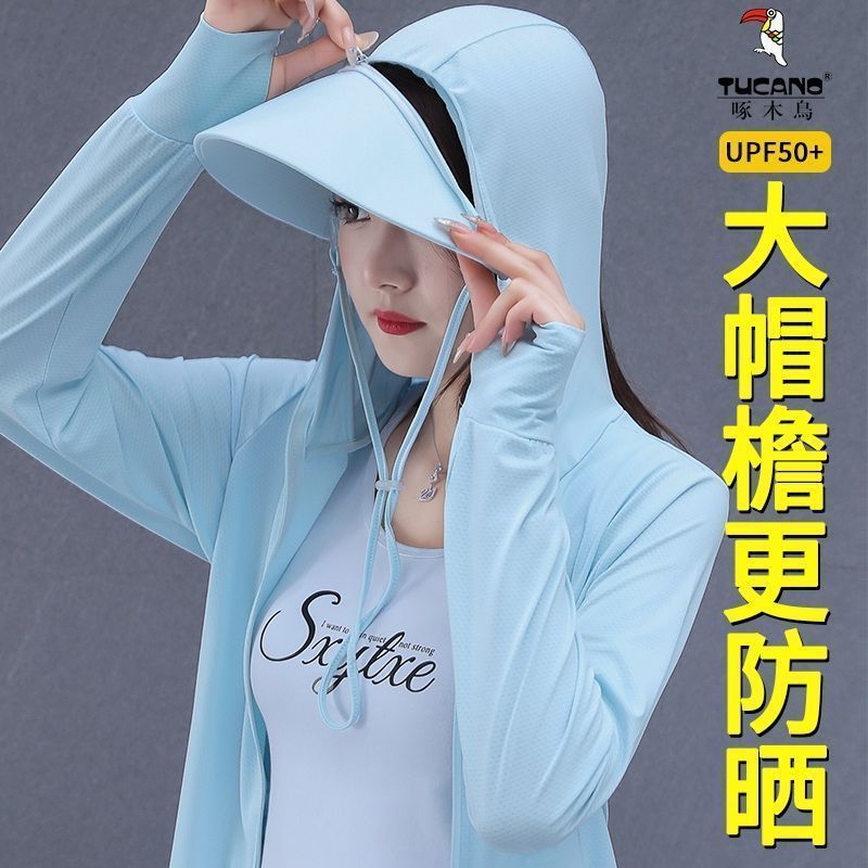 啄木鸟UPF50+冰丝大帽檐可拆卸男女款防晒衣轻薄款透气防晒服外套