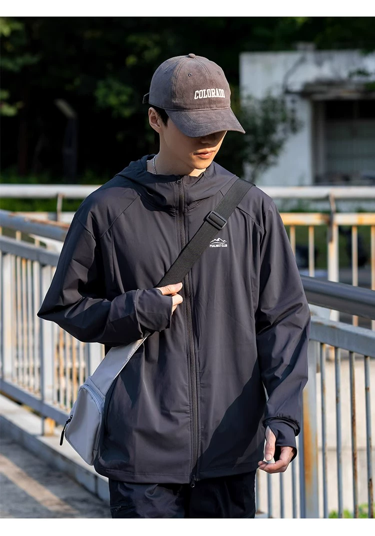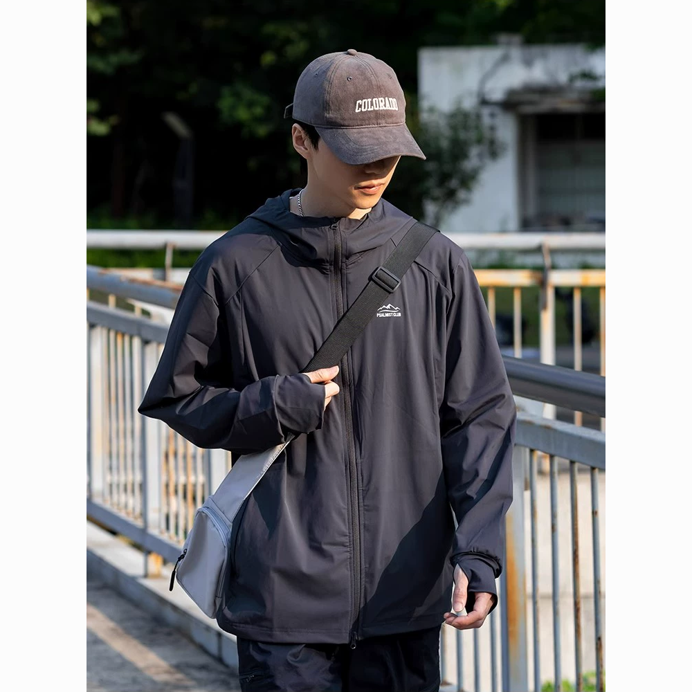 薄款冰丝防晒衣男生夏季冲锋衣潮牌宽松日系原宿连帽防紫外线外套