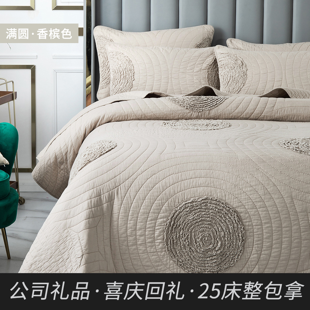 简约绗缝被床上三件套纯棉床盖 全棉保暖加厚空调被床单批发