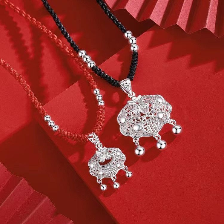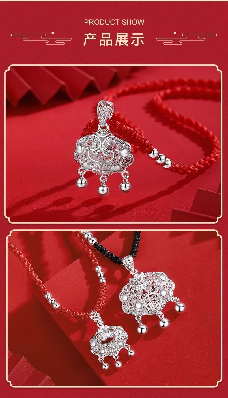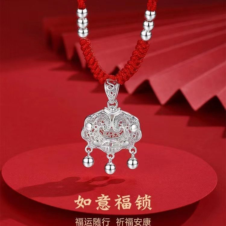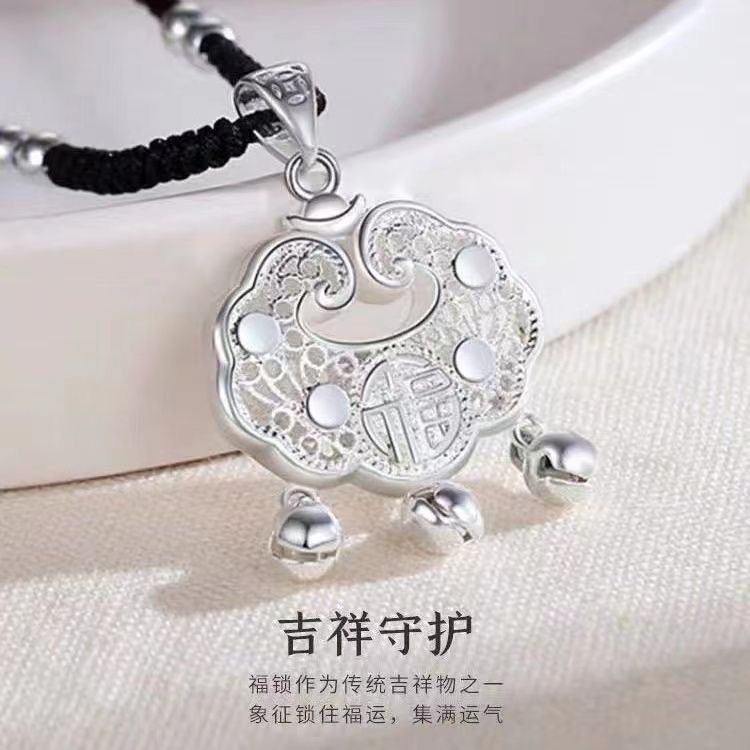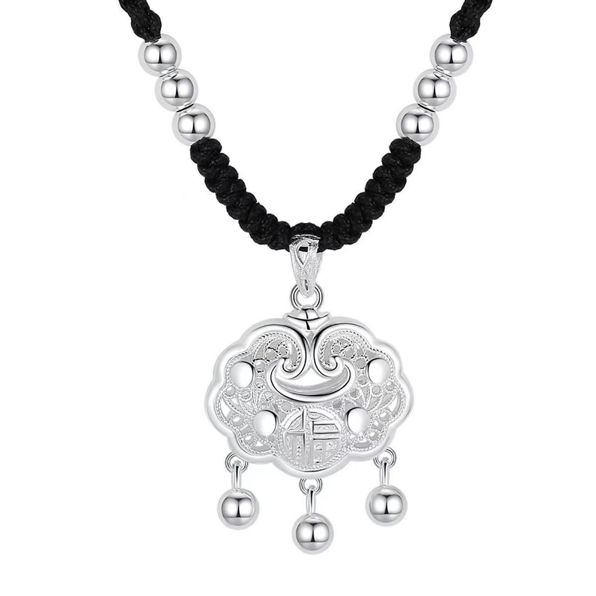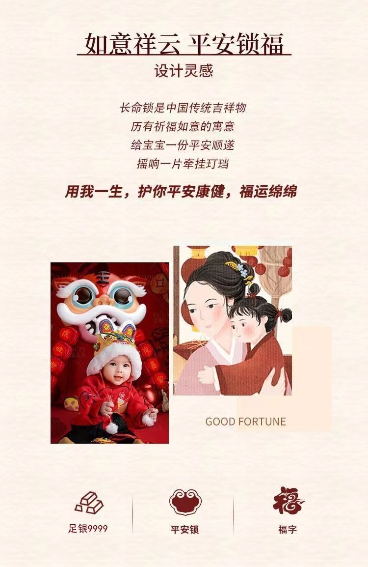 足银纯银正品宝宝999平安项链花丝镂空吊坠礼物手工福字长命锁