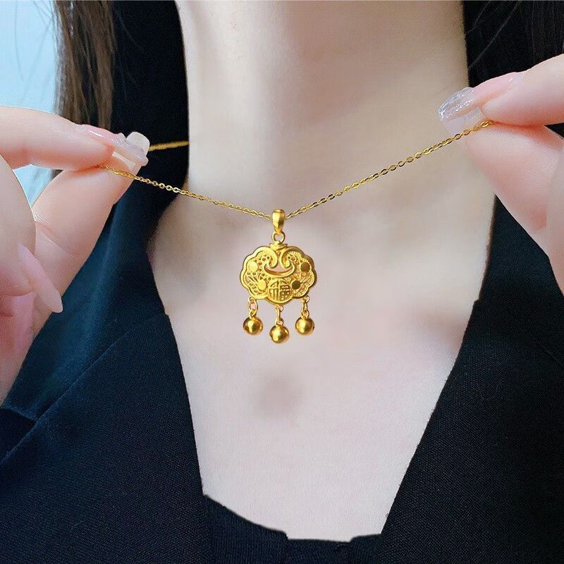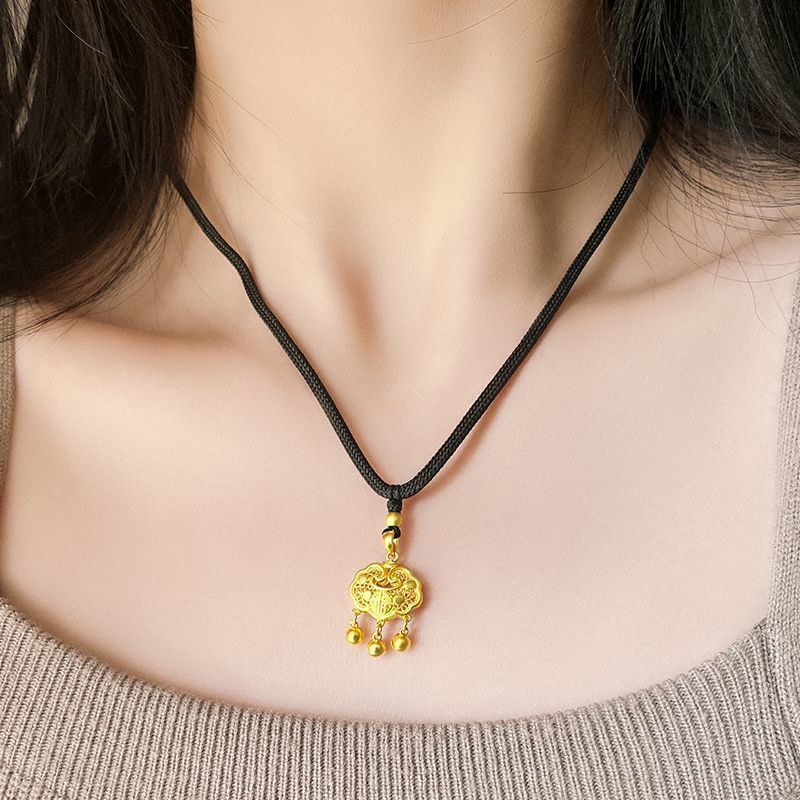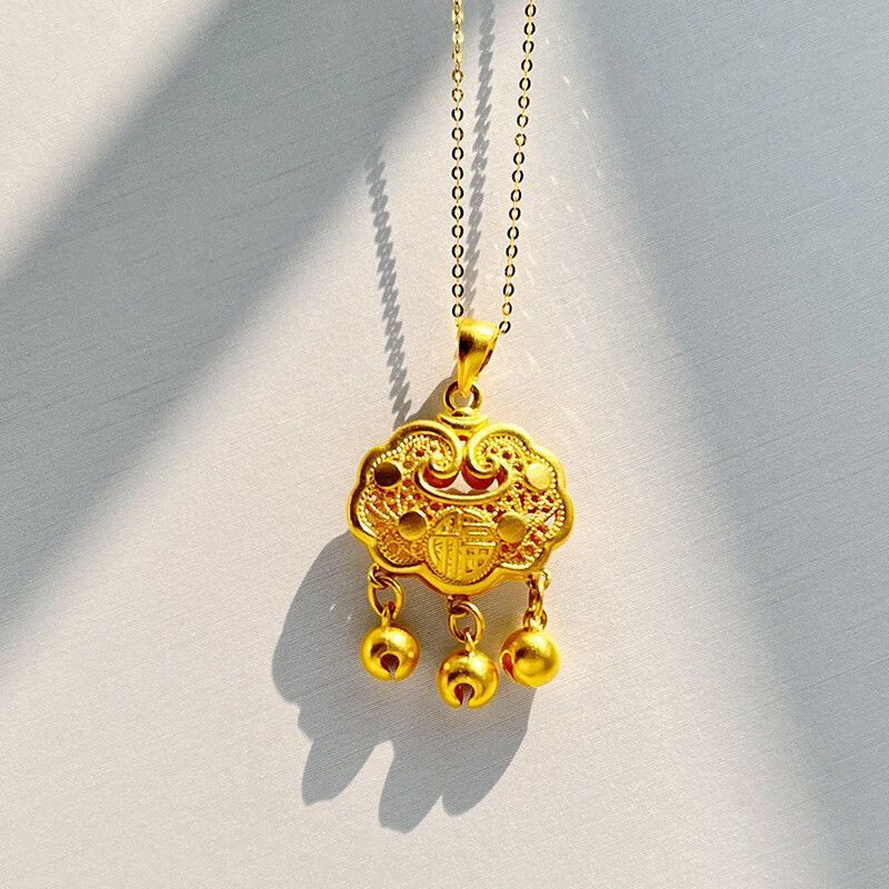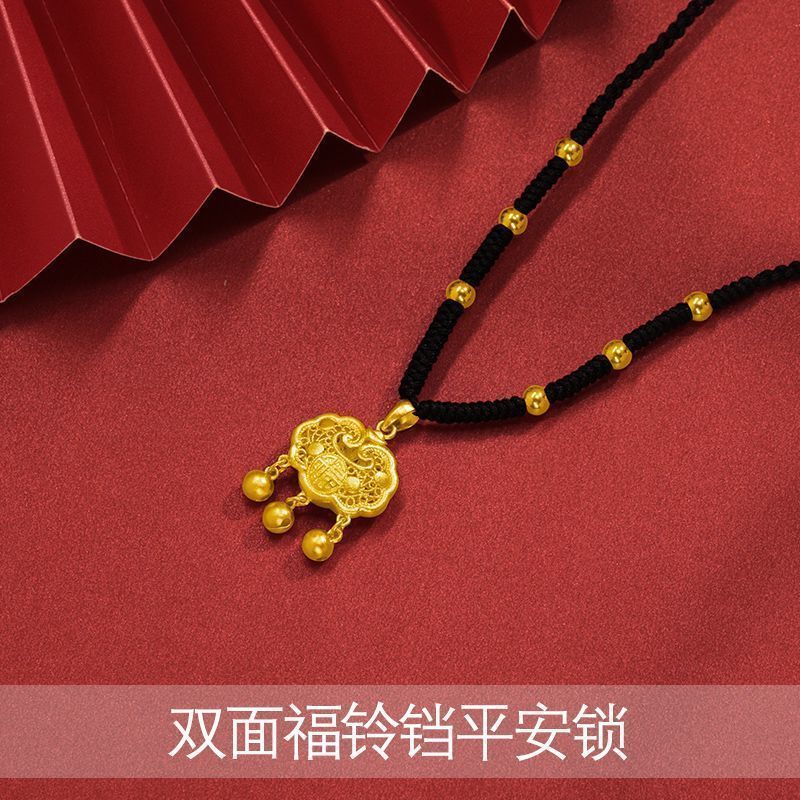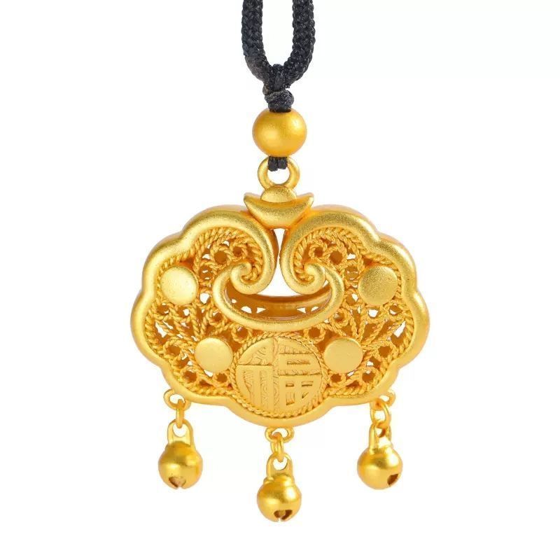 黄金9999足金足银如意福金锁吊坠平安长命锁真金包银永久不掉色