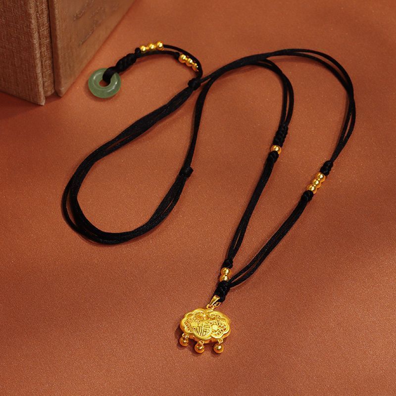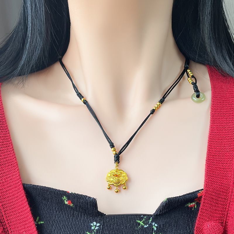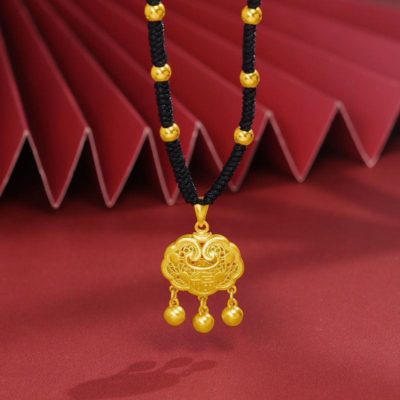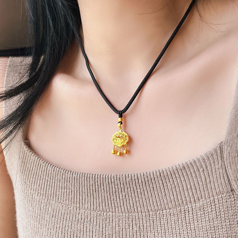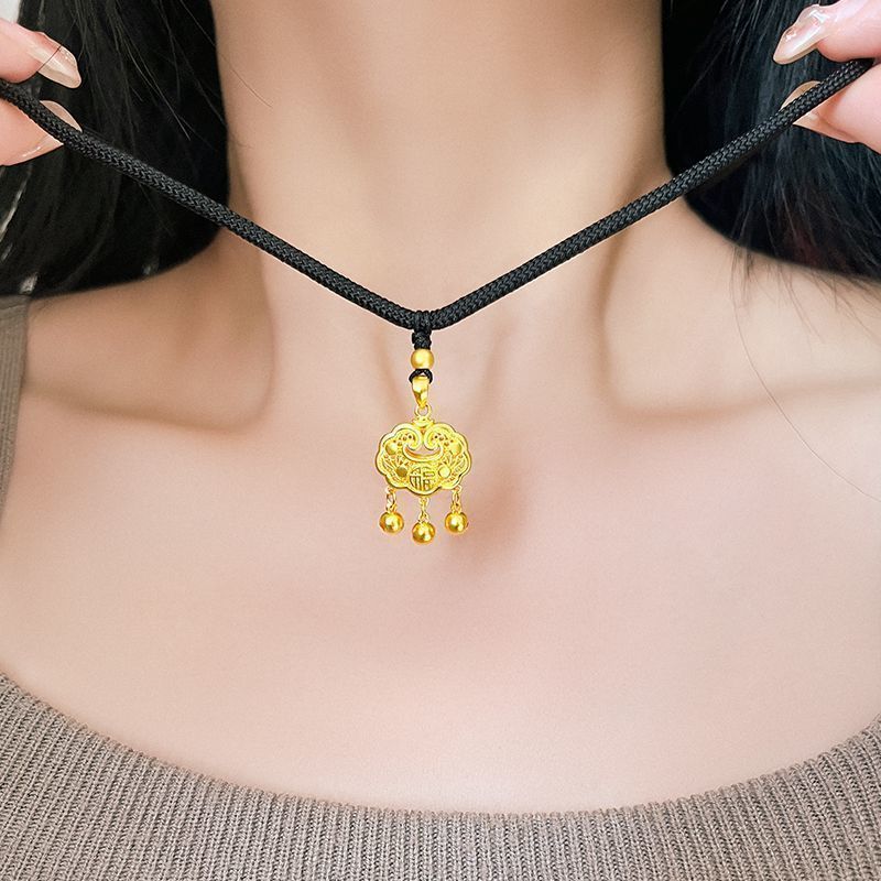 黄金9999足金足银如意福金锁吊坠平安长命锁真金包银永久不掉色