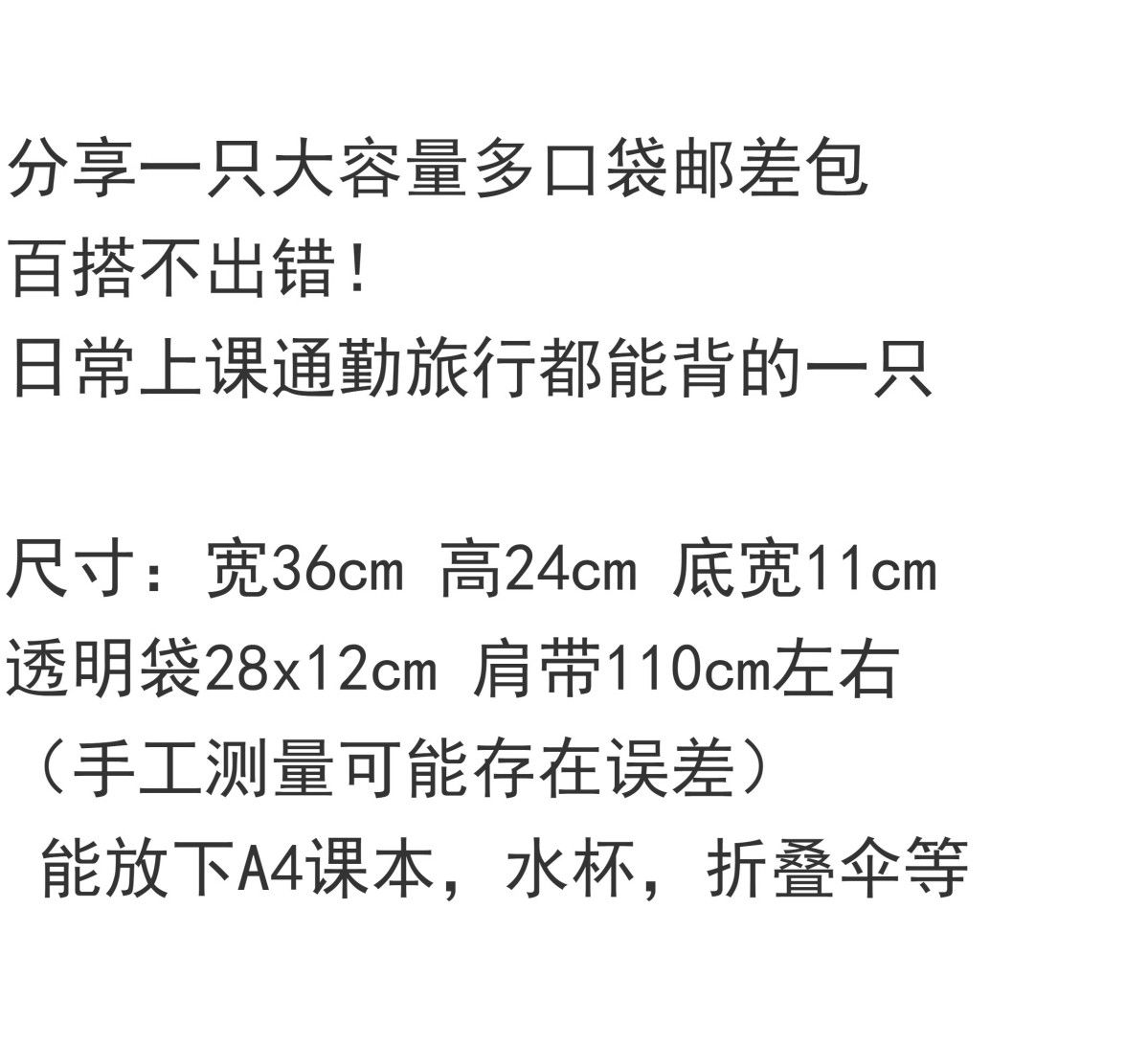 PARKDANCE工装邮差包男学生上课单肩背包韩版潮流大容量斜挎包女