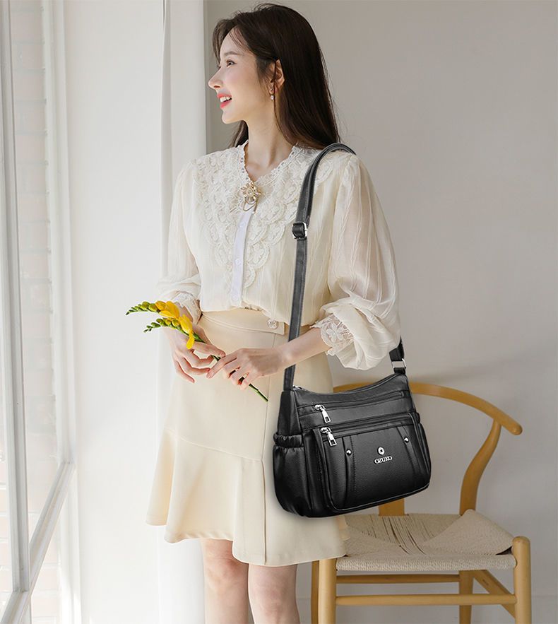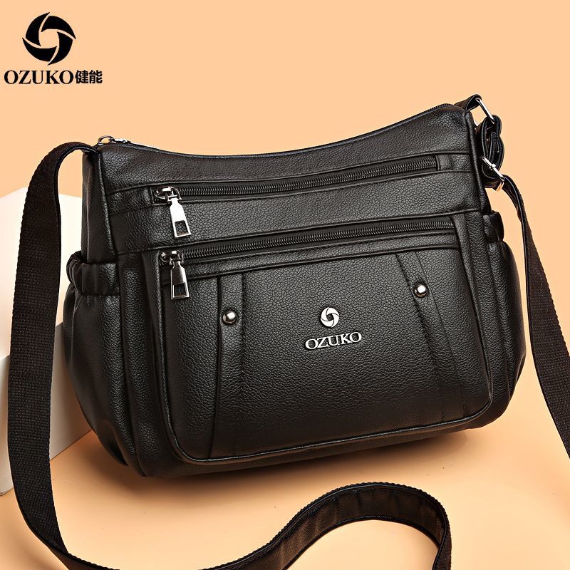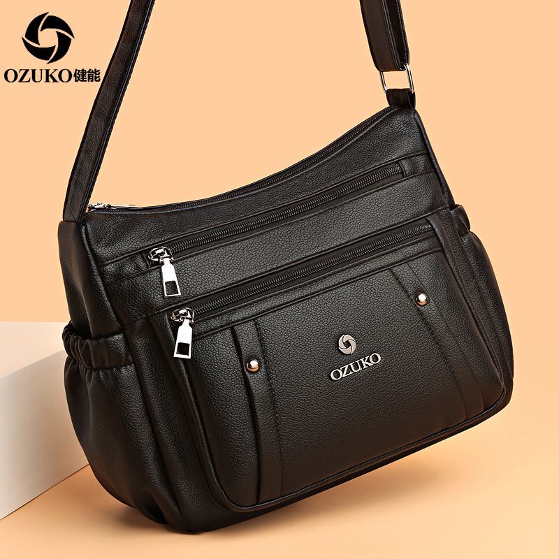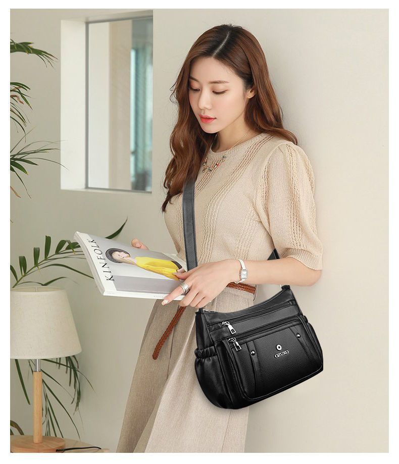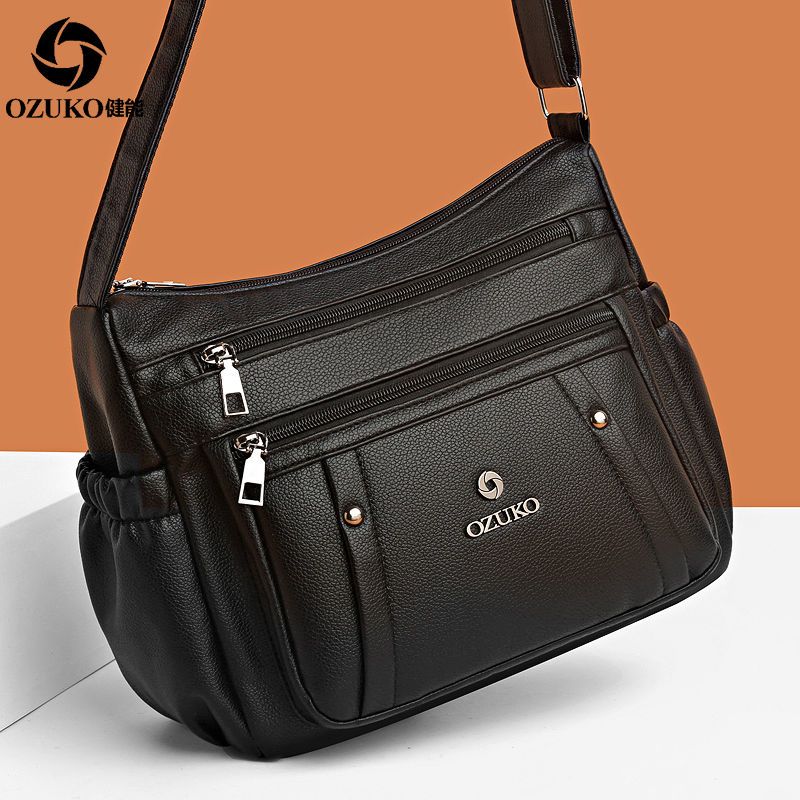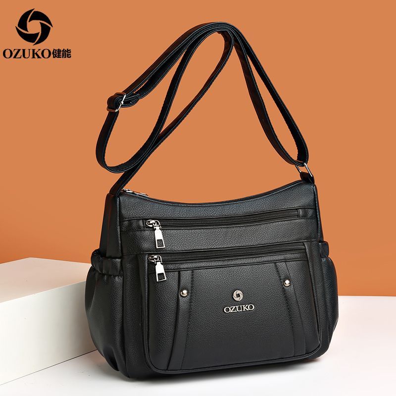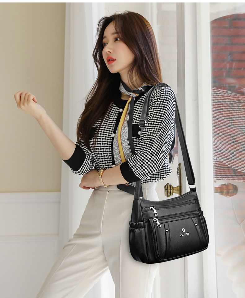 健能中年软皮包2022新款潮时尚百搭婆婆女士单肩斜挎包大气妈妈包