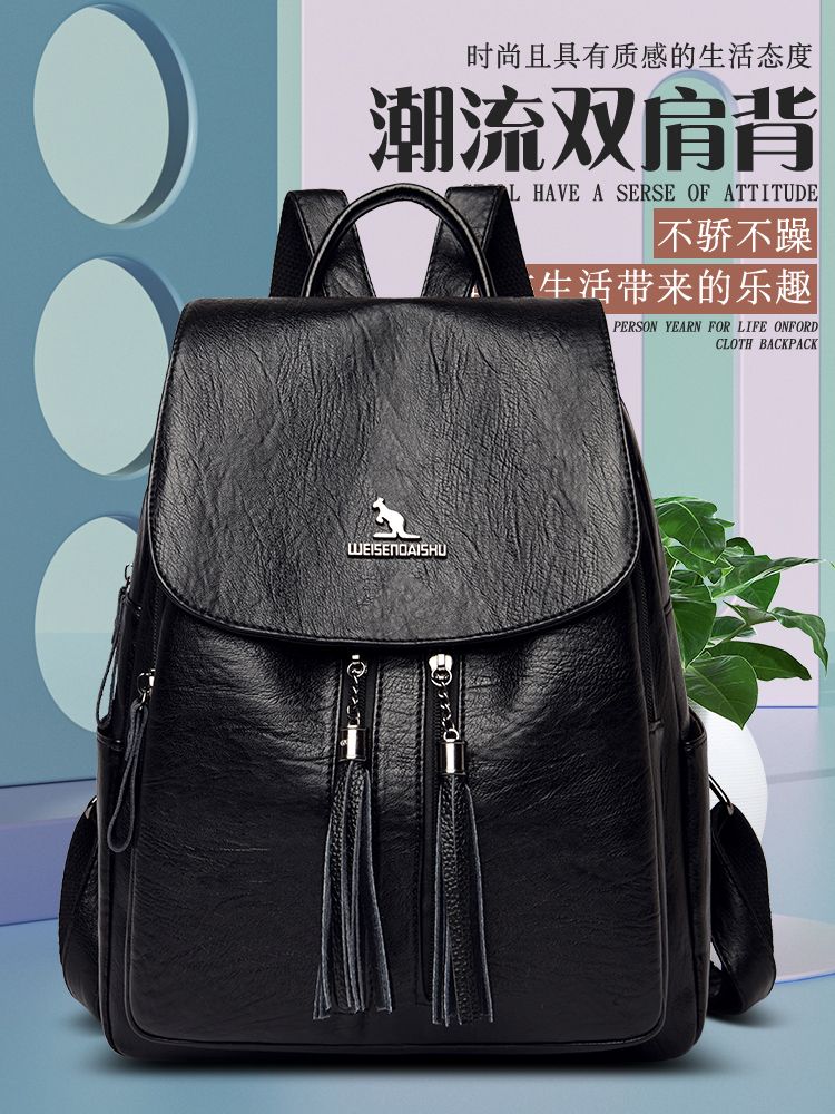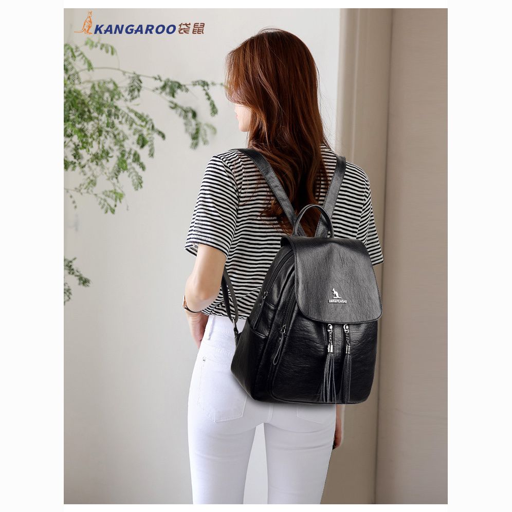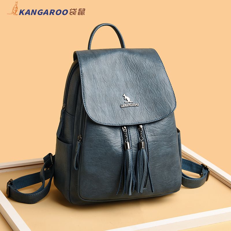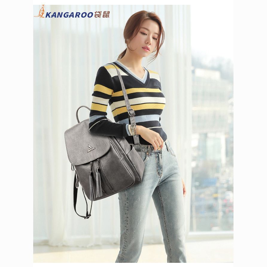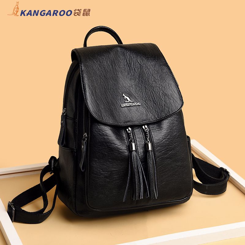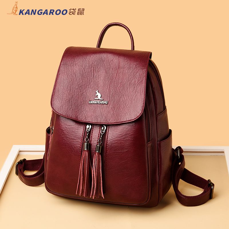 袋鼠专柜正品真皮质感双肩包2024新款大容量软皮时尚旅行包妈妈包