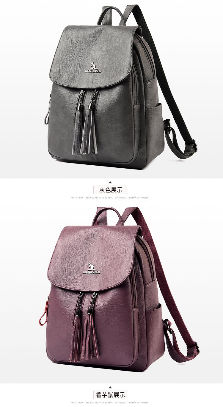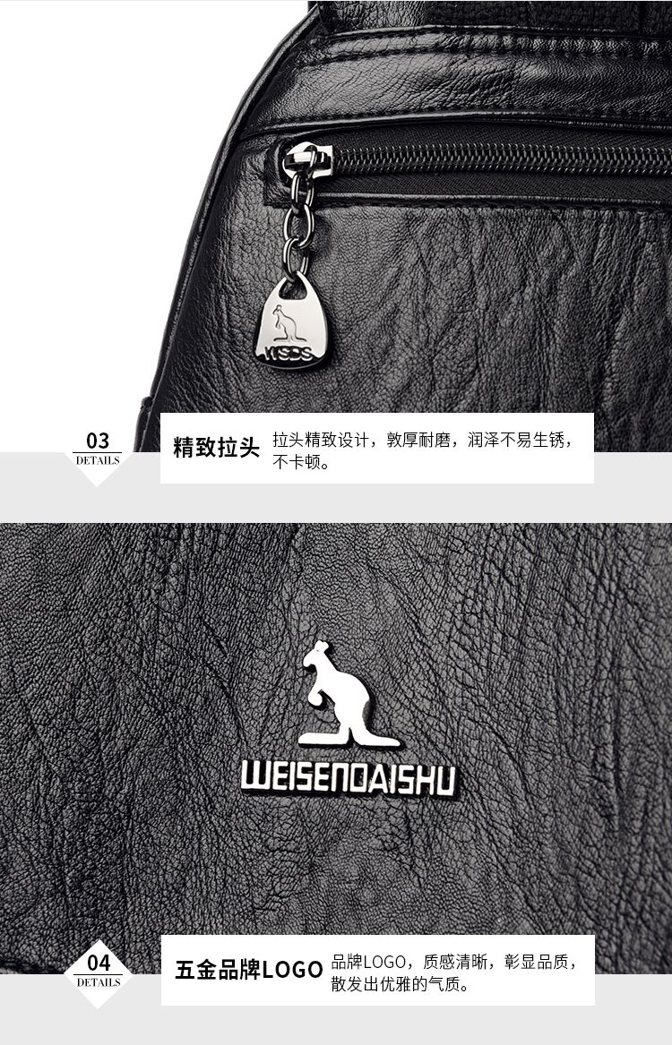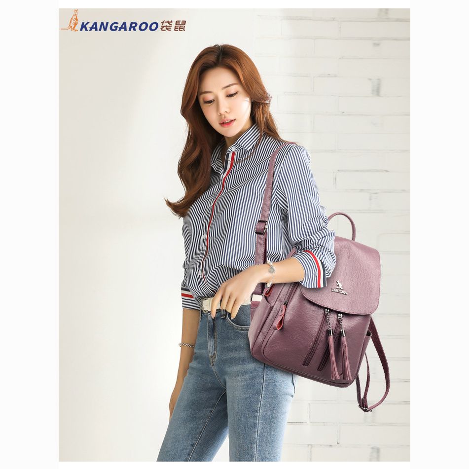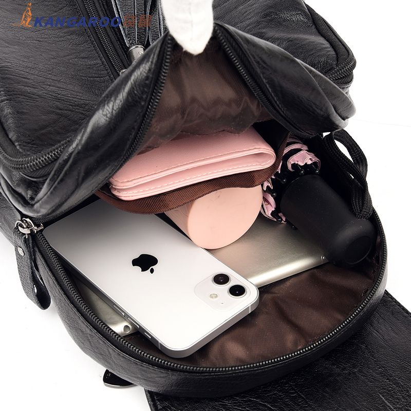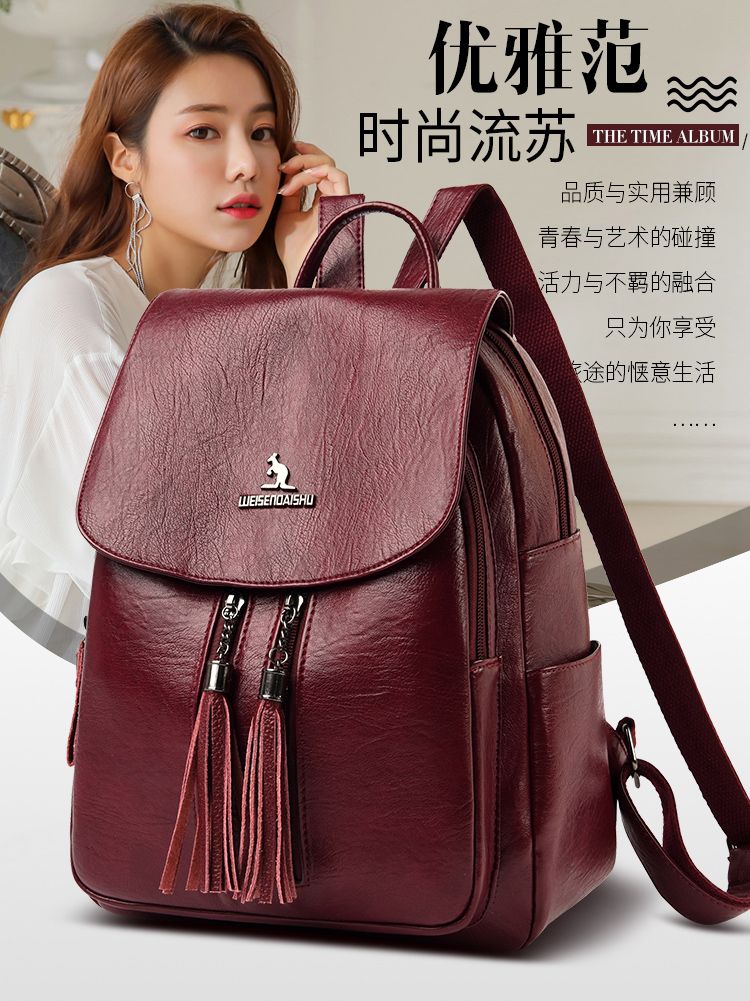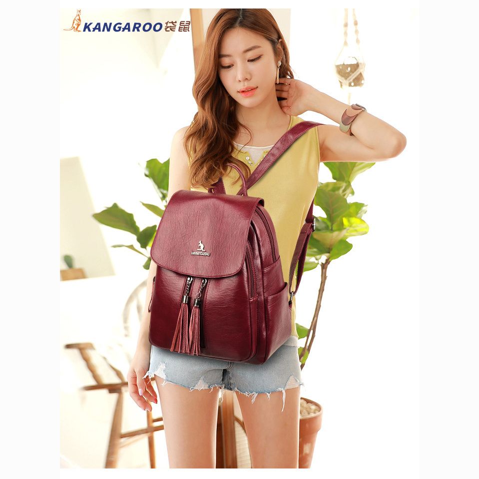 袋鼠专柜正品真皮质感双肩包2024新款大容量软皮时尚旅行包妈妈包