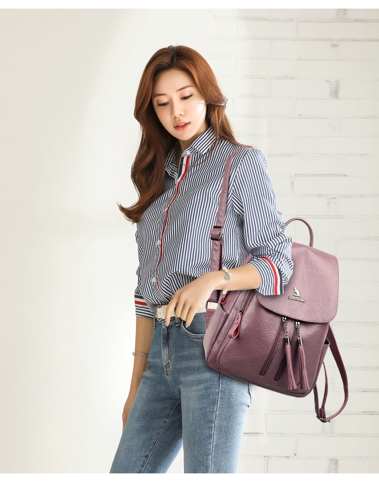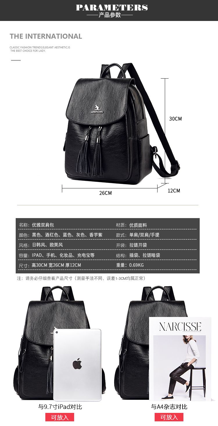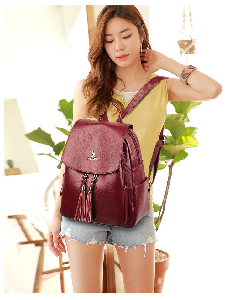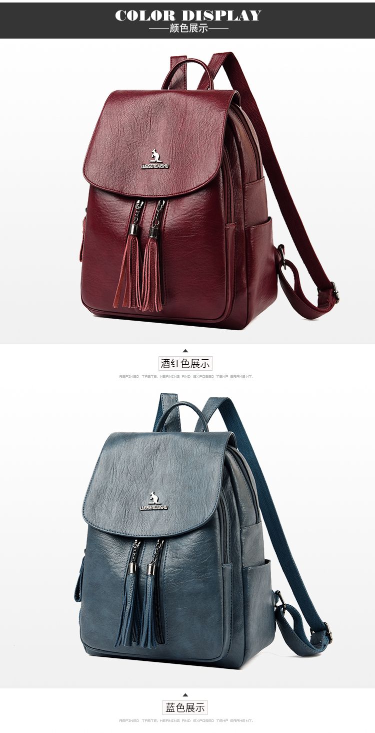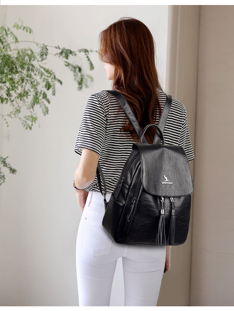 袋鼠专柜正品真皮质感双肩包2024新款大容量软皮时尚旅行包妈妈包