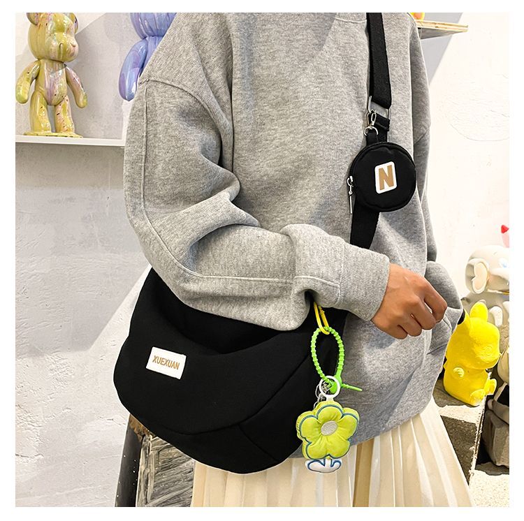 诺贝达大容量帆布包包女2024新款潮休闲通勤饺子包单肩斜挎包女包
