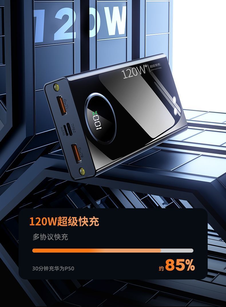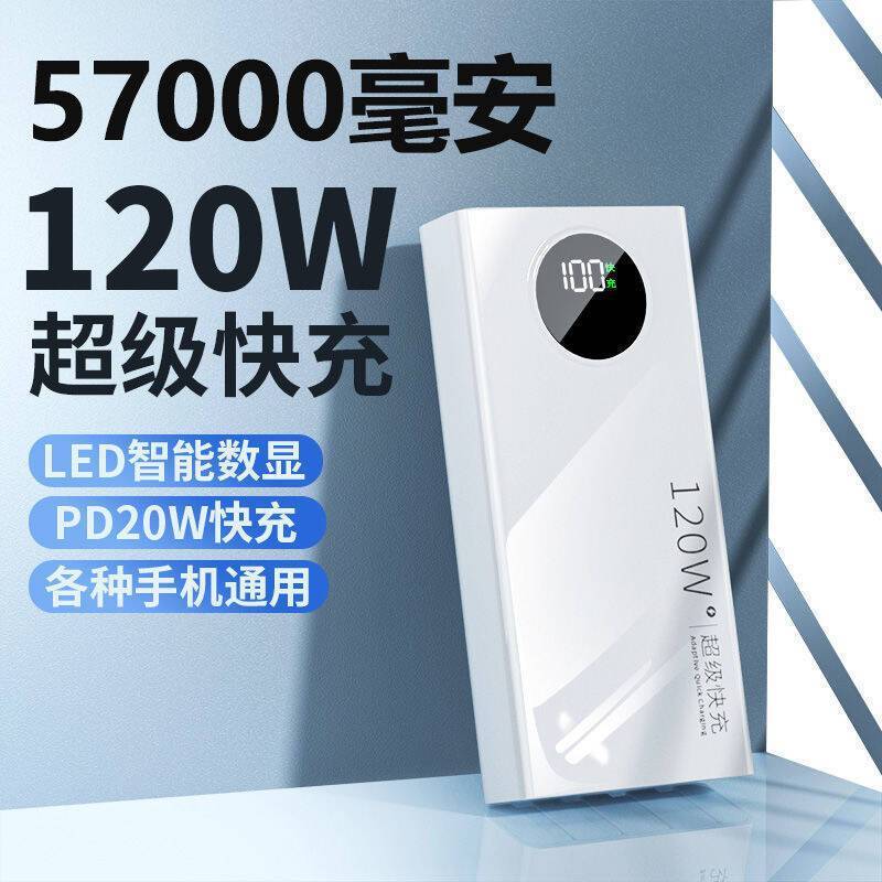 大容量57000毫安120W超级快充充电宝便携耐用手机通用移动电源5万