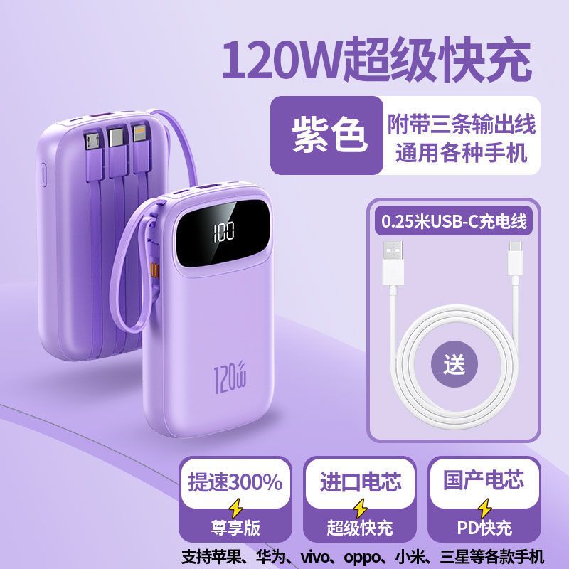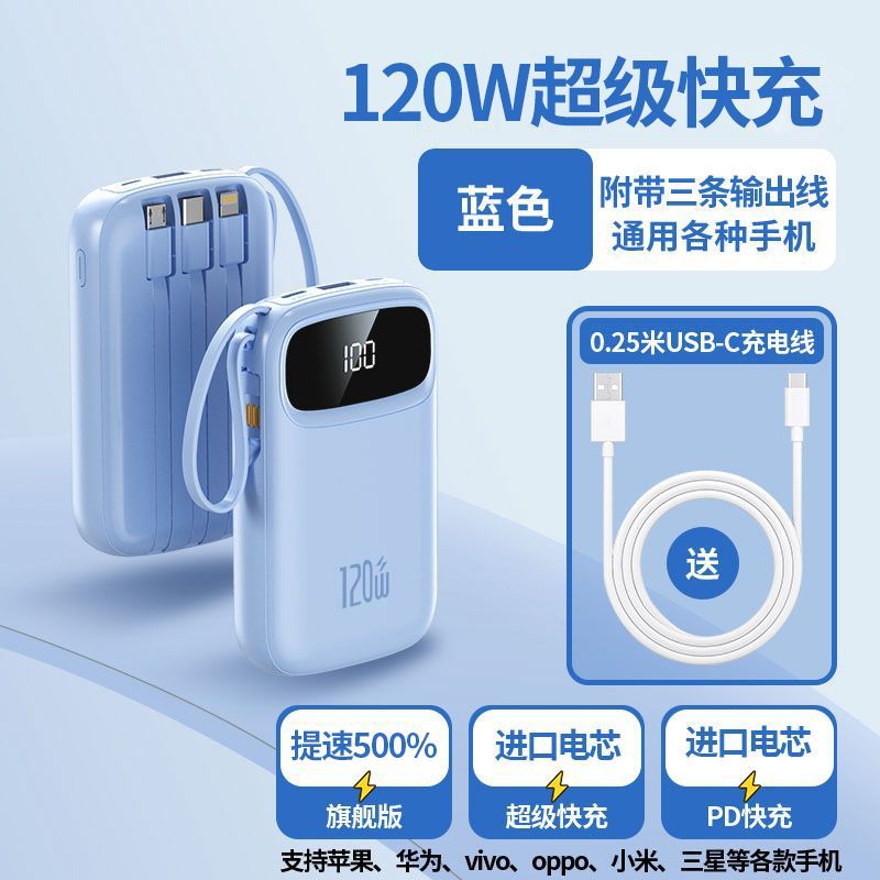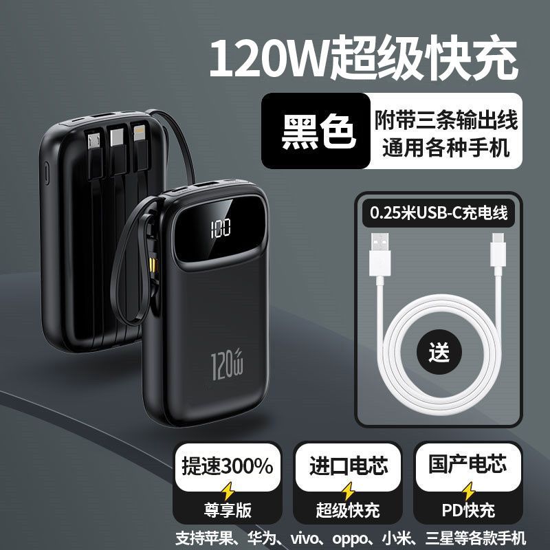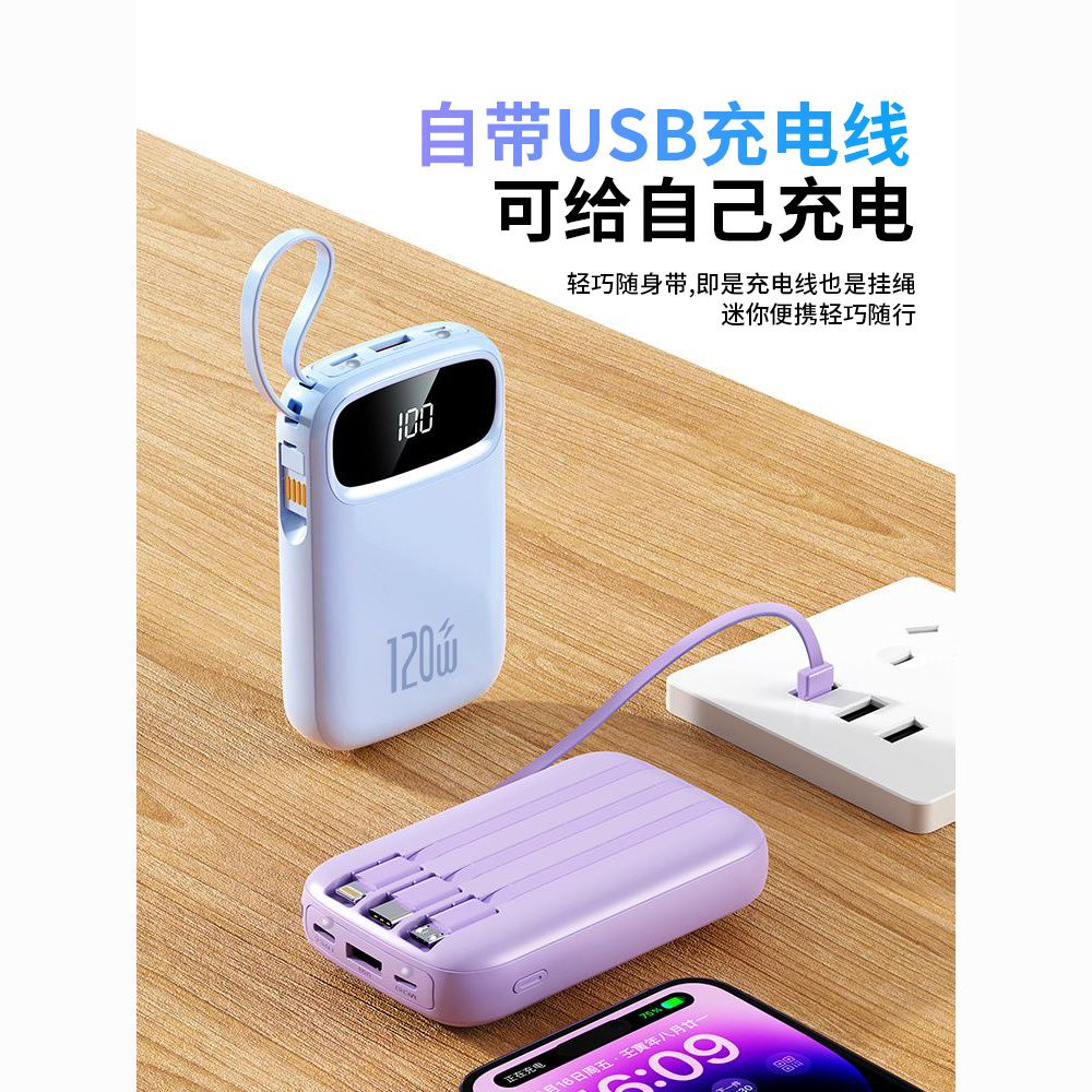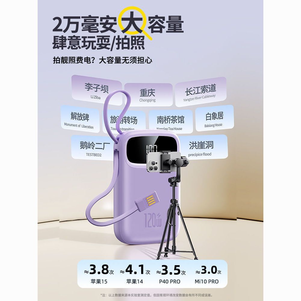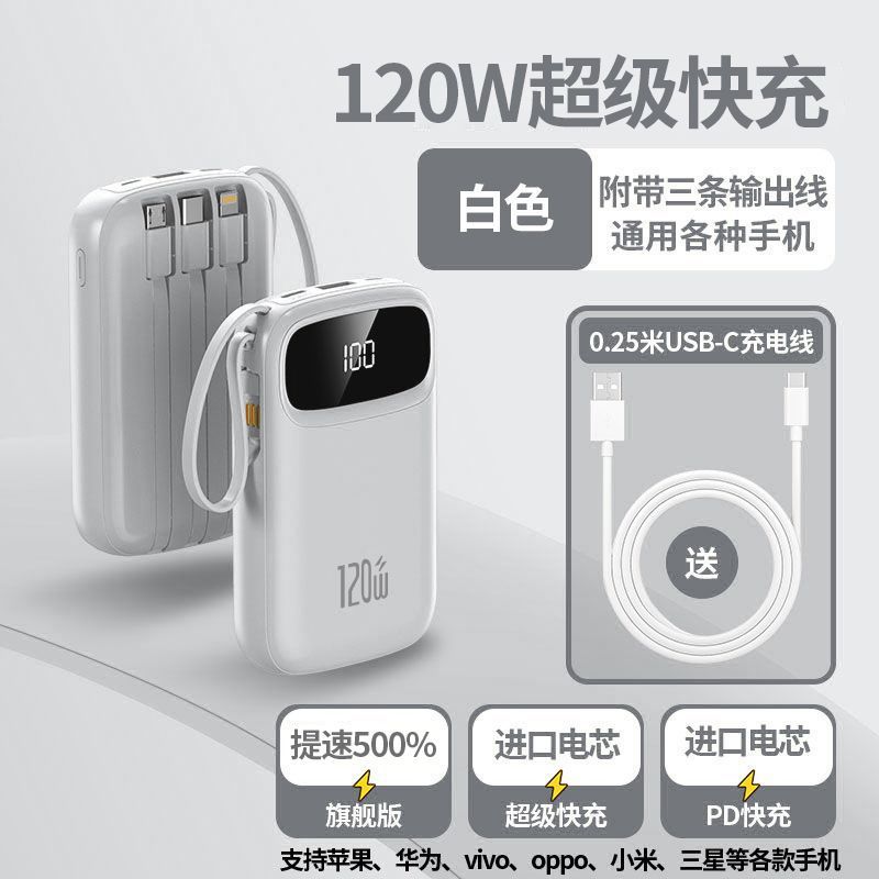 适用小米120W超级快充20000毫安充电宝自带四线大容量移动电源冲