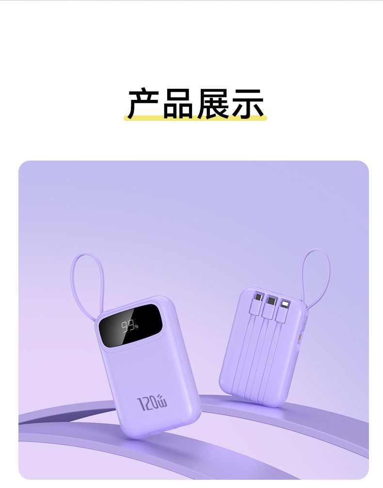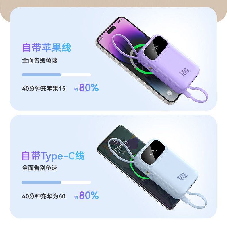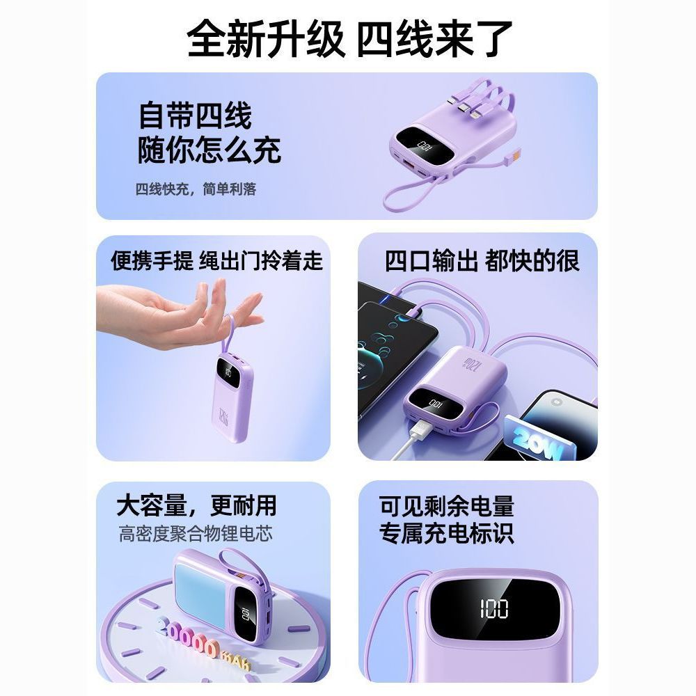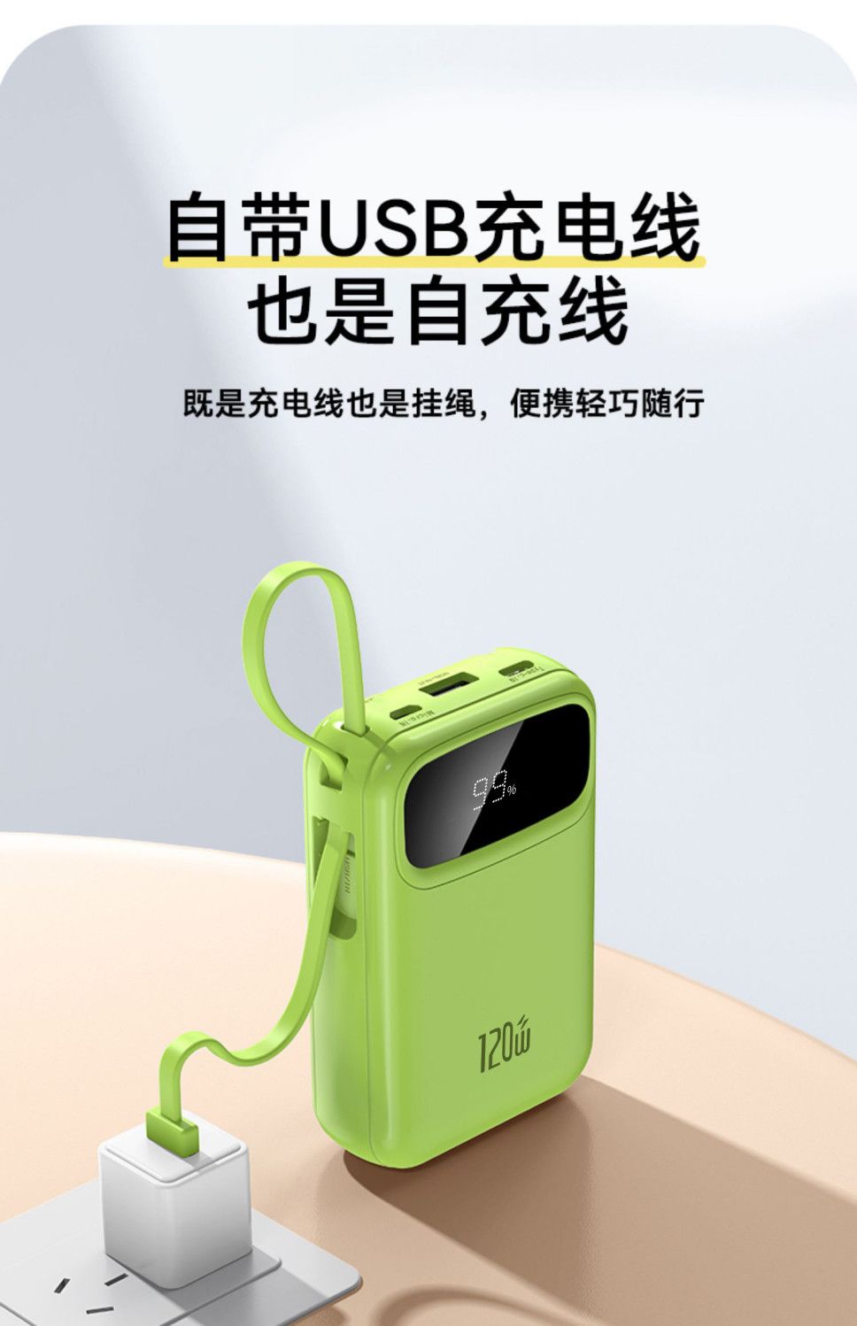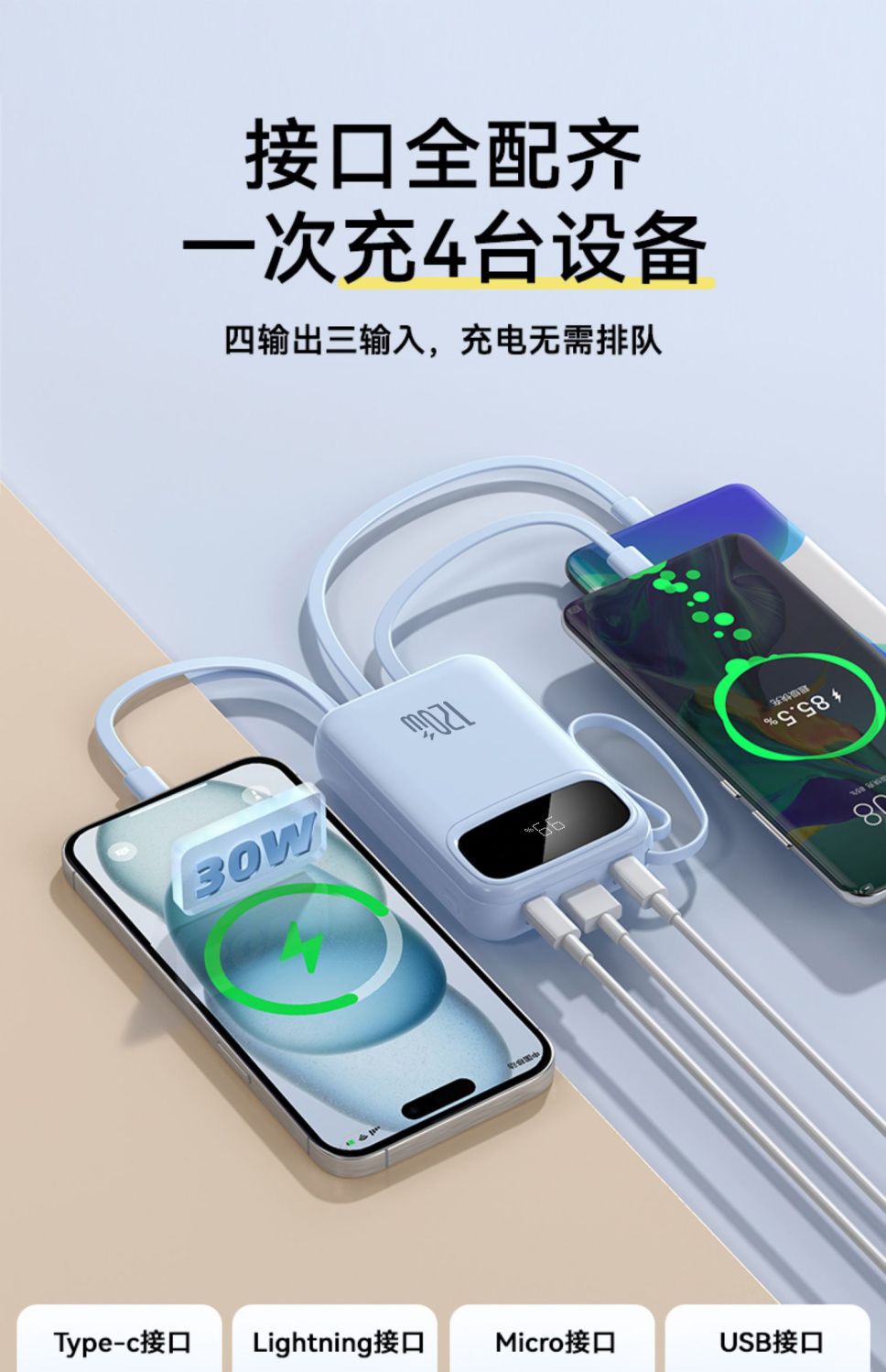 适用小米120W超级快充20000毫安充电宝自带四线大容量移动电源冲