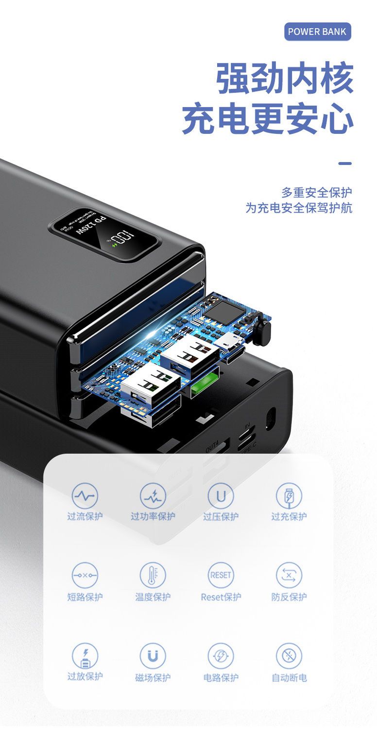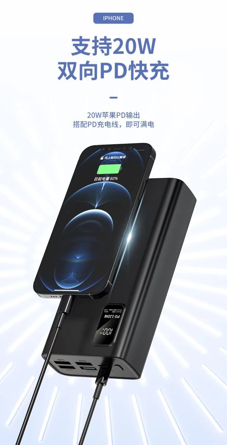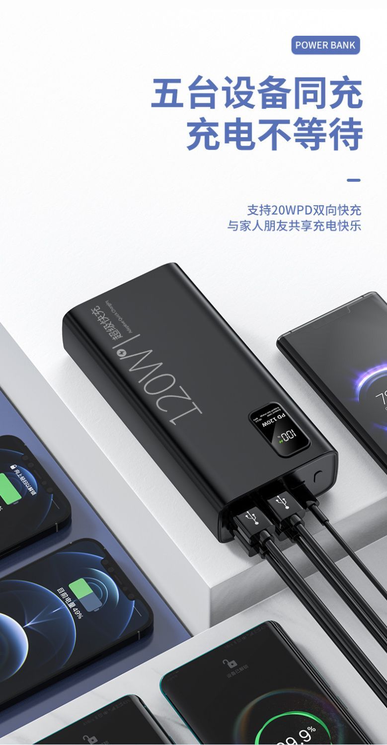 超级快充120W充电宝60000毫安骑手直播宿舍手机通用移动电源闪充