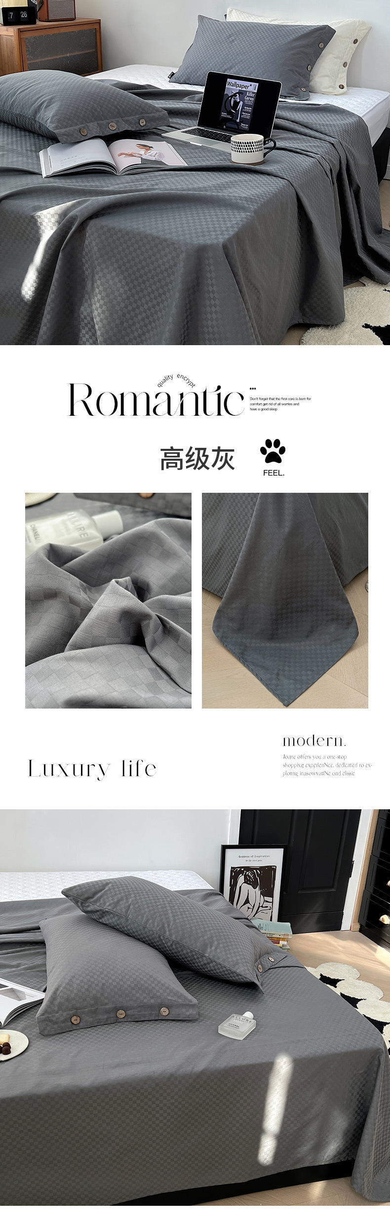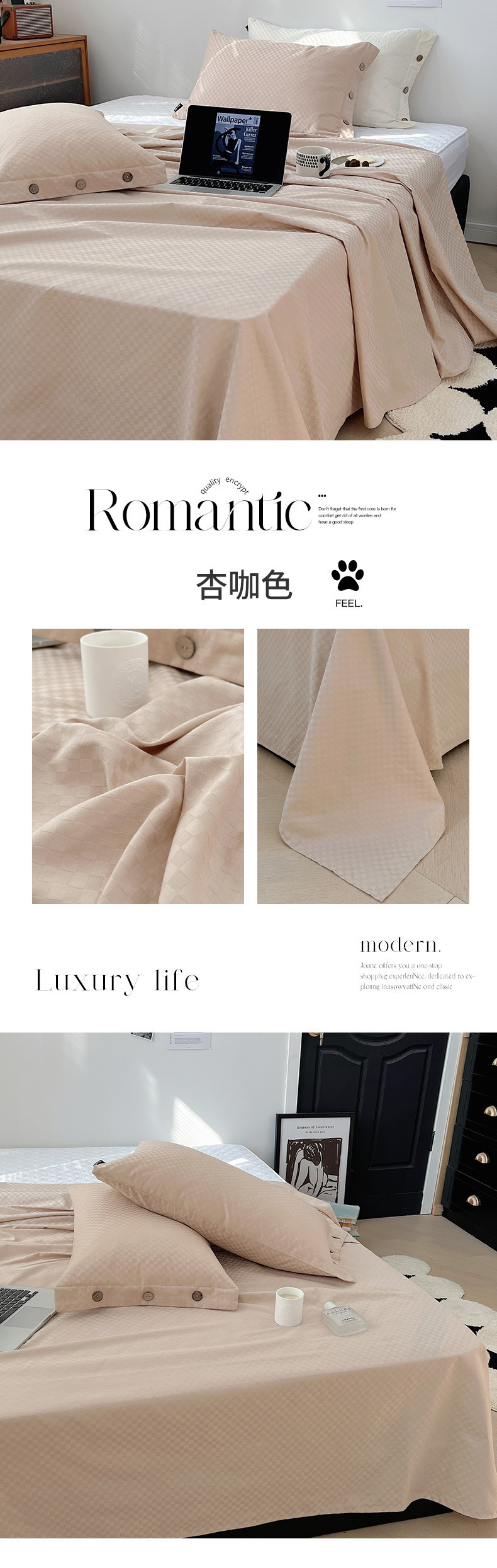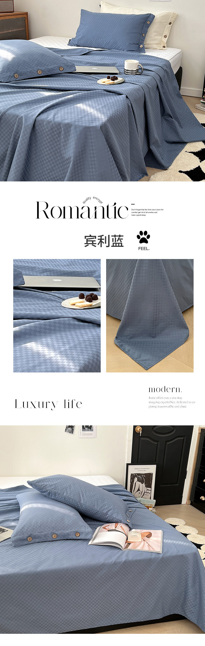 60支长绒棉床单单件春季提花贡缎被单宿舍单人床单三件套