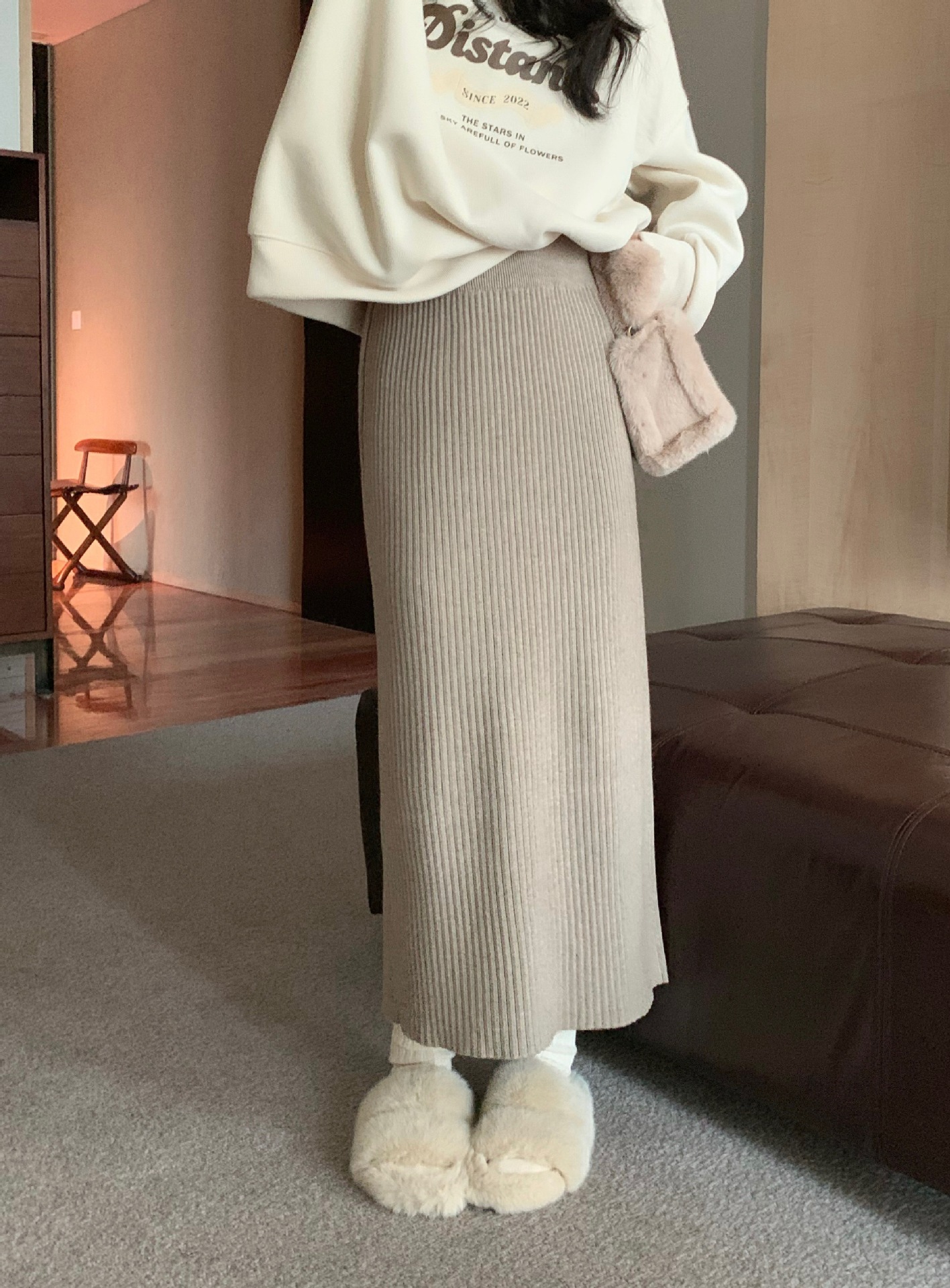 不开叉针织半身裙女2023秋冬中长款毛线裙子宽松显瘦高腰包臀裙子