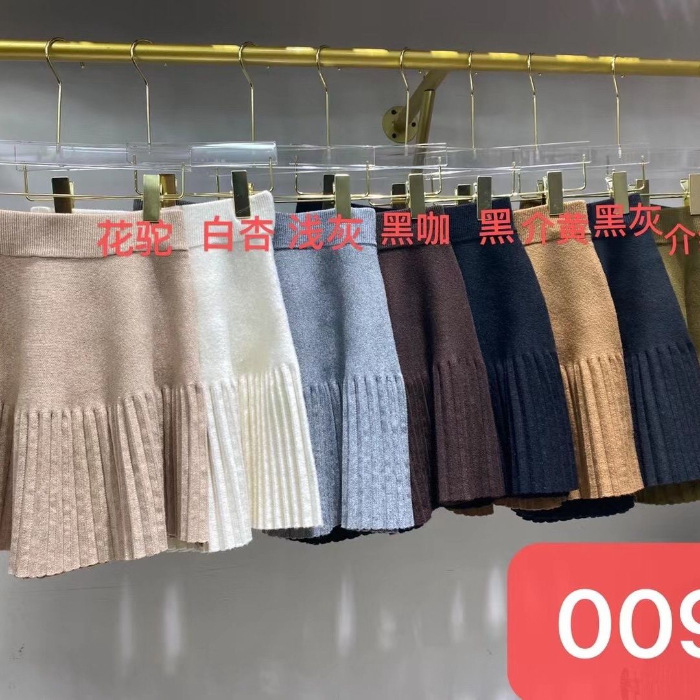 针织百褶裙女秋冬新款高腰短裙小个子休闲百搭A字半身裙跨境女装