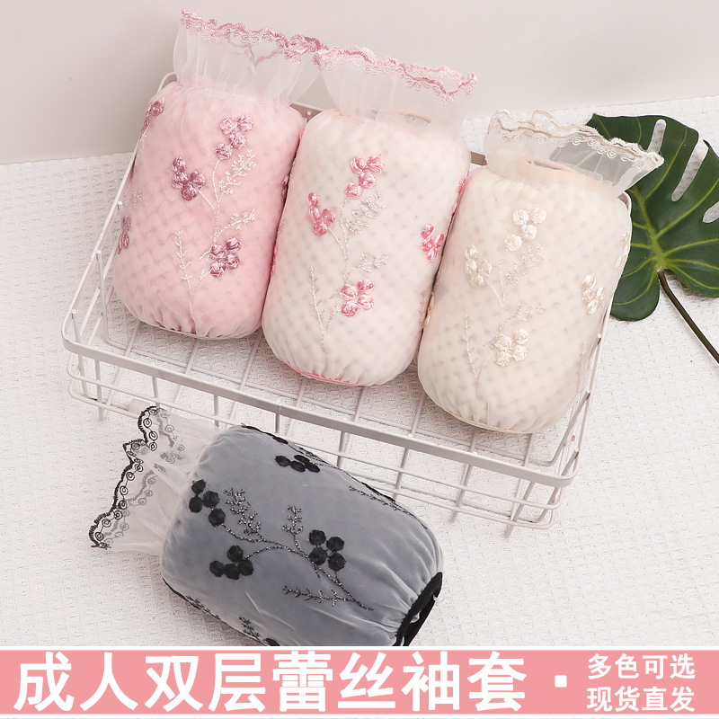 新款女士中长款双层蕾丝袖套甜美刺绣蝴蝶袖套耐脏防污护袖套袖女