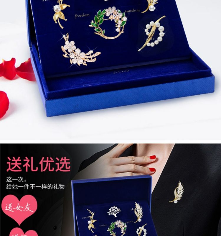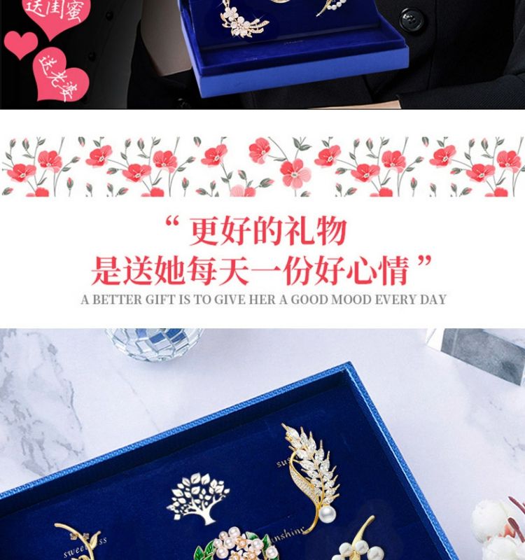 缔晶胸针高档胸花衣角扣别针三件套礼盒装中秋教师节礼物送老师
