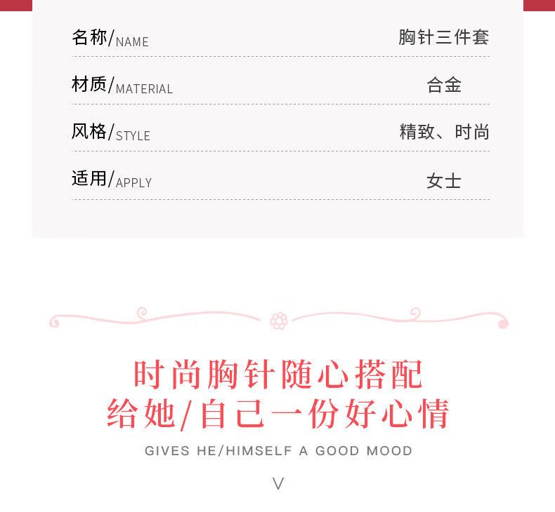 | high-end brooch 3-piece set [exquisite gift box] ts171(高档胸针3件套【精美礼盒】TS171) | USD $8.8 | 99999 piece available |