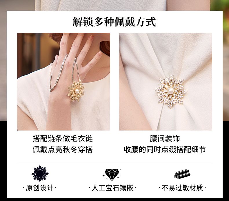 法国Chunqi雪花系列复古胸花气质秋冬胸针高档丝巾扣新年礼物