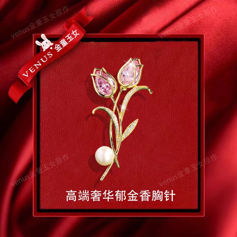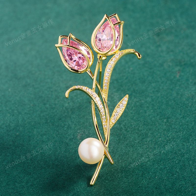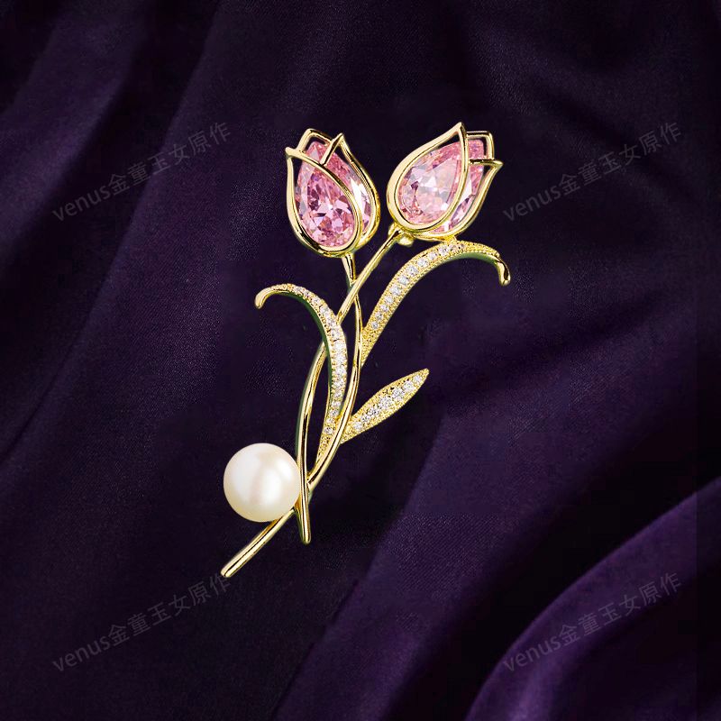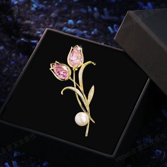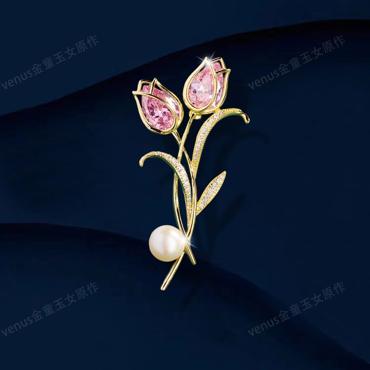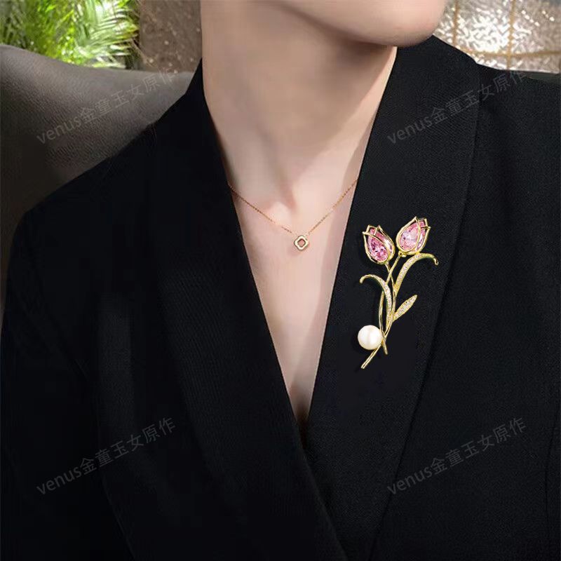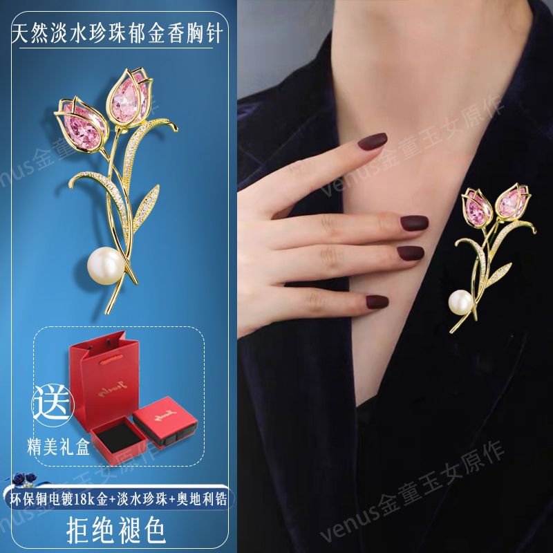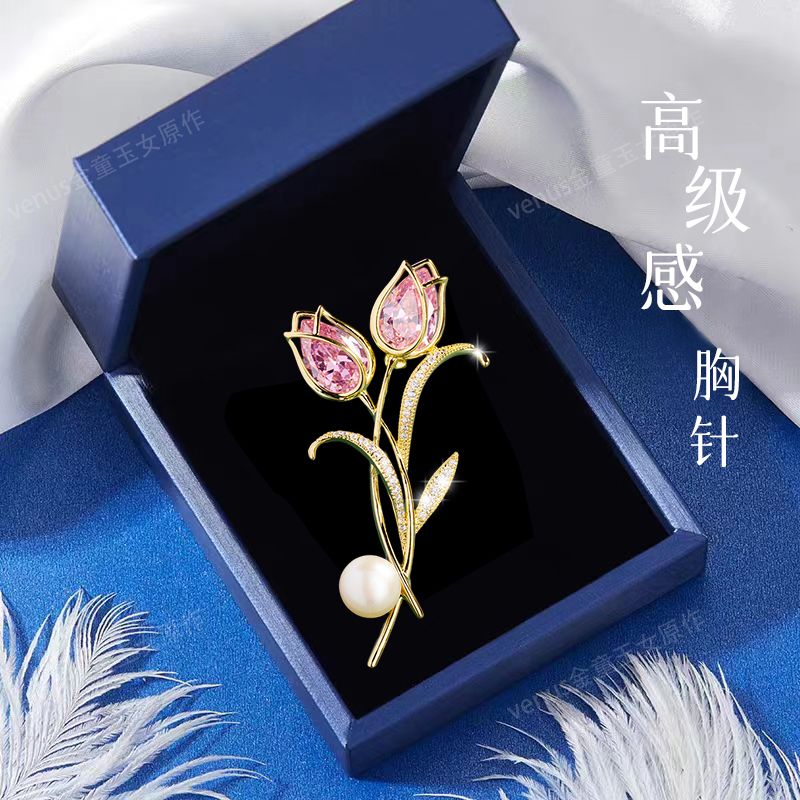 郁金香珍珠胸针高档女款胸花别针精致设计感小众高级感小香风配饰