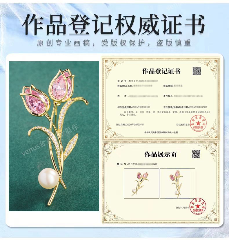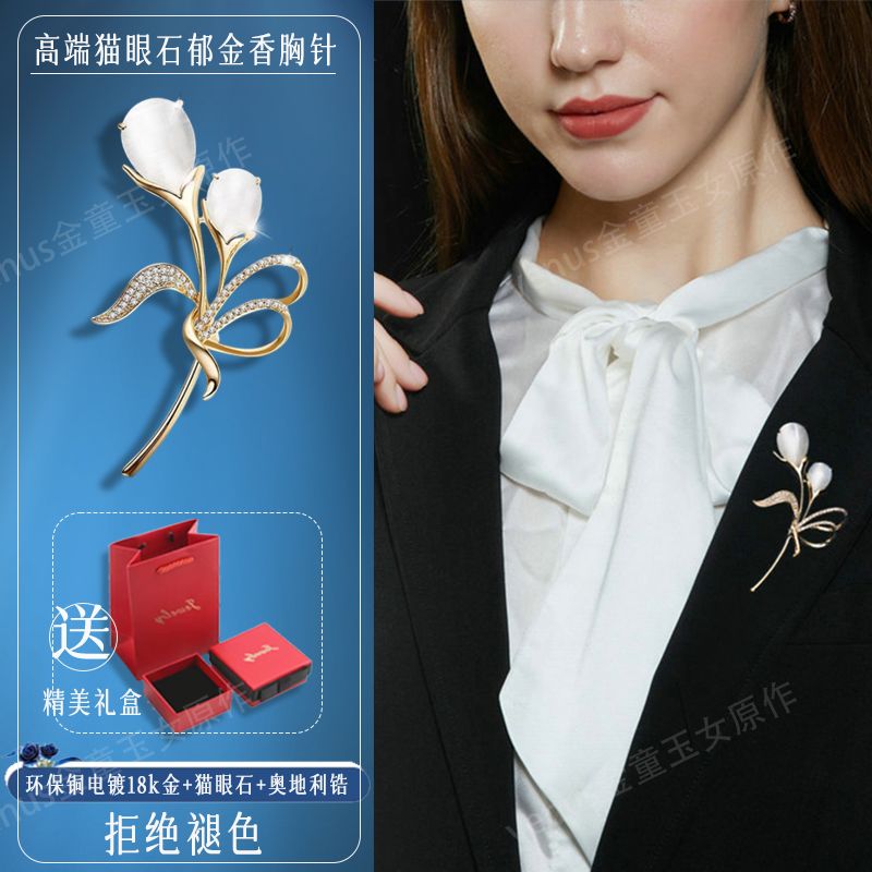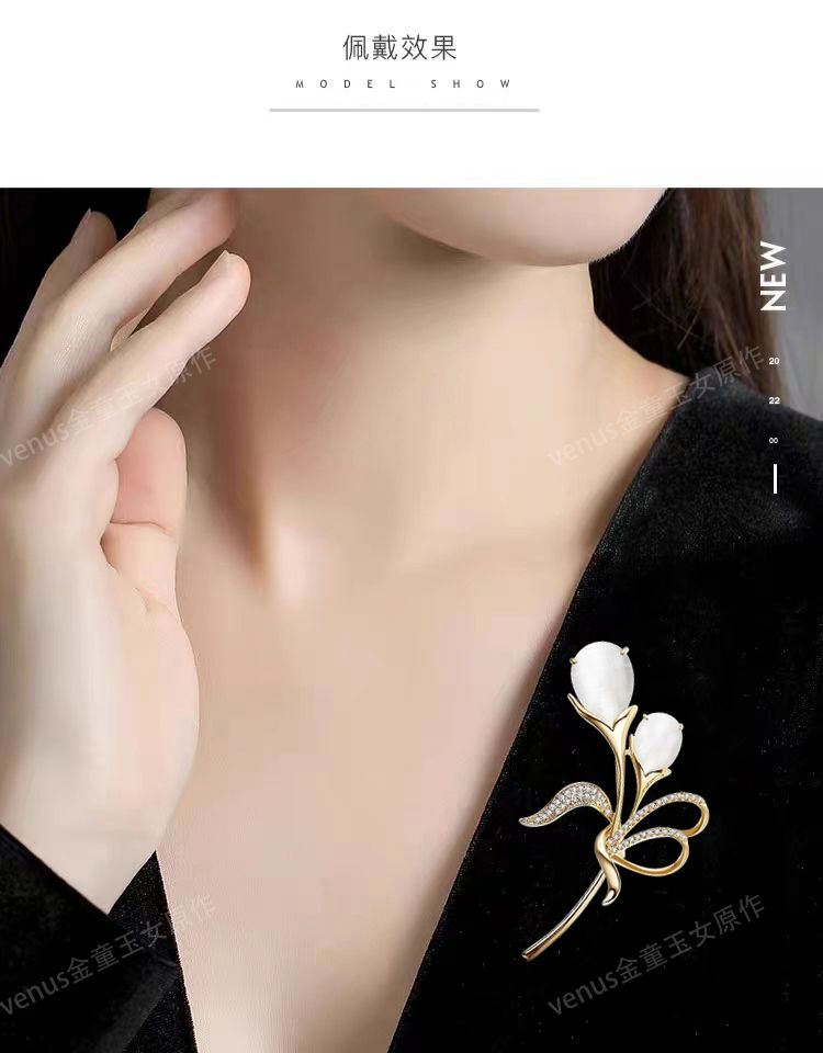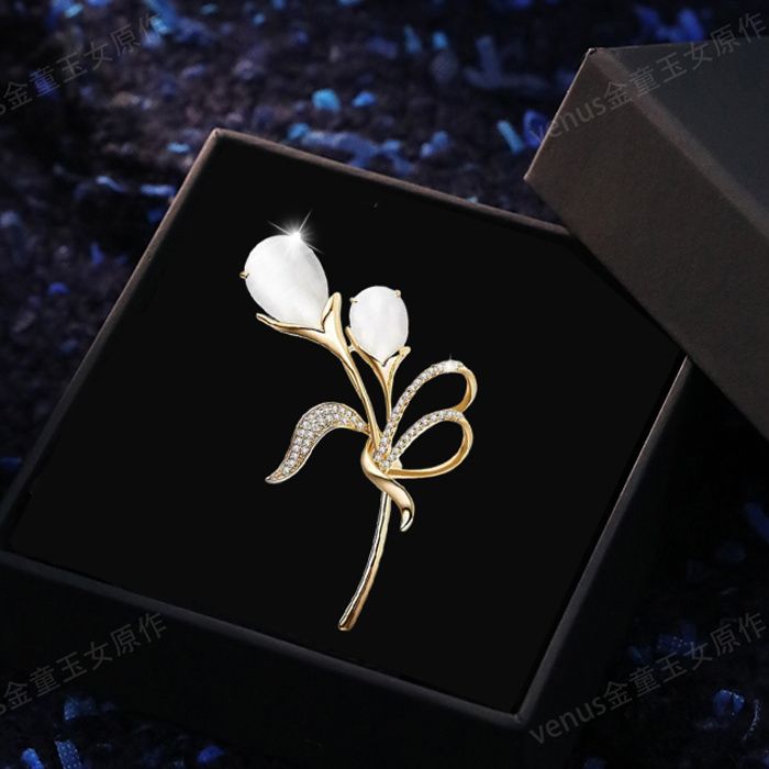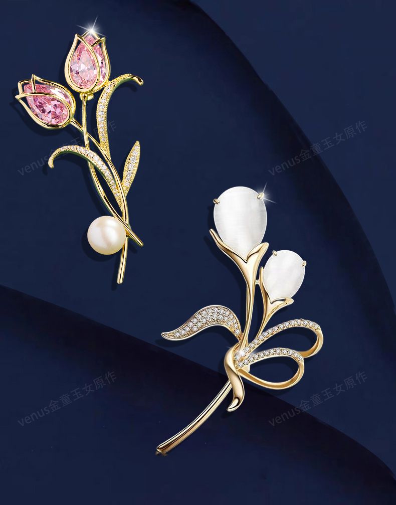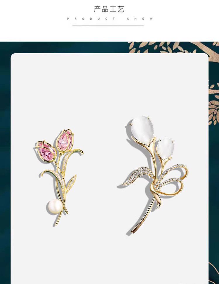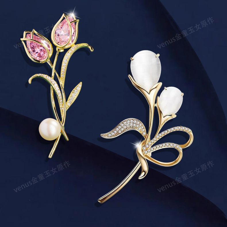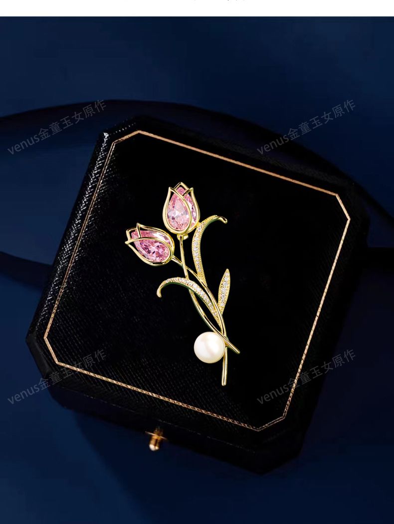 郁金香珍珠胸针高档女款胸花别针精致设计感小众高级感小香风配饰