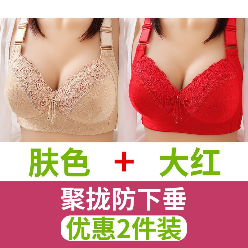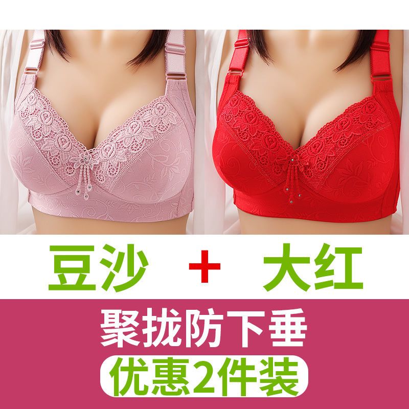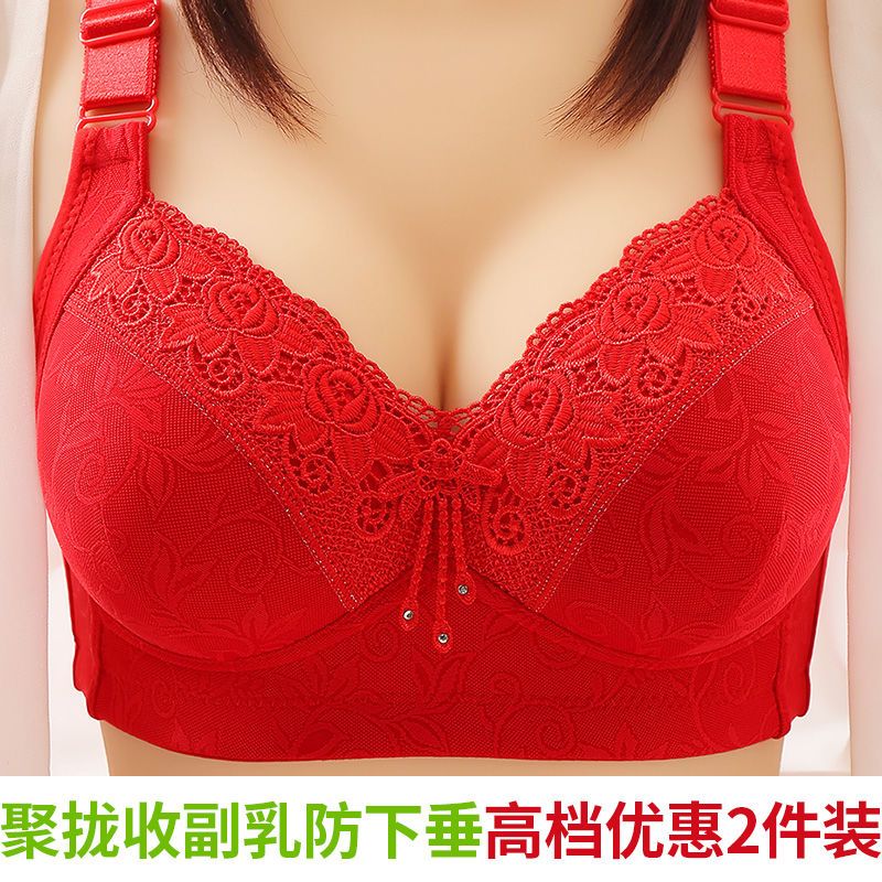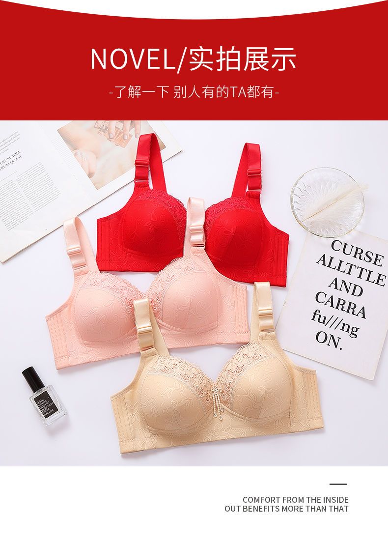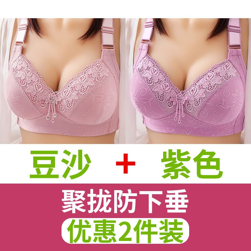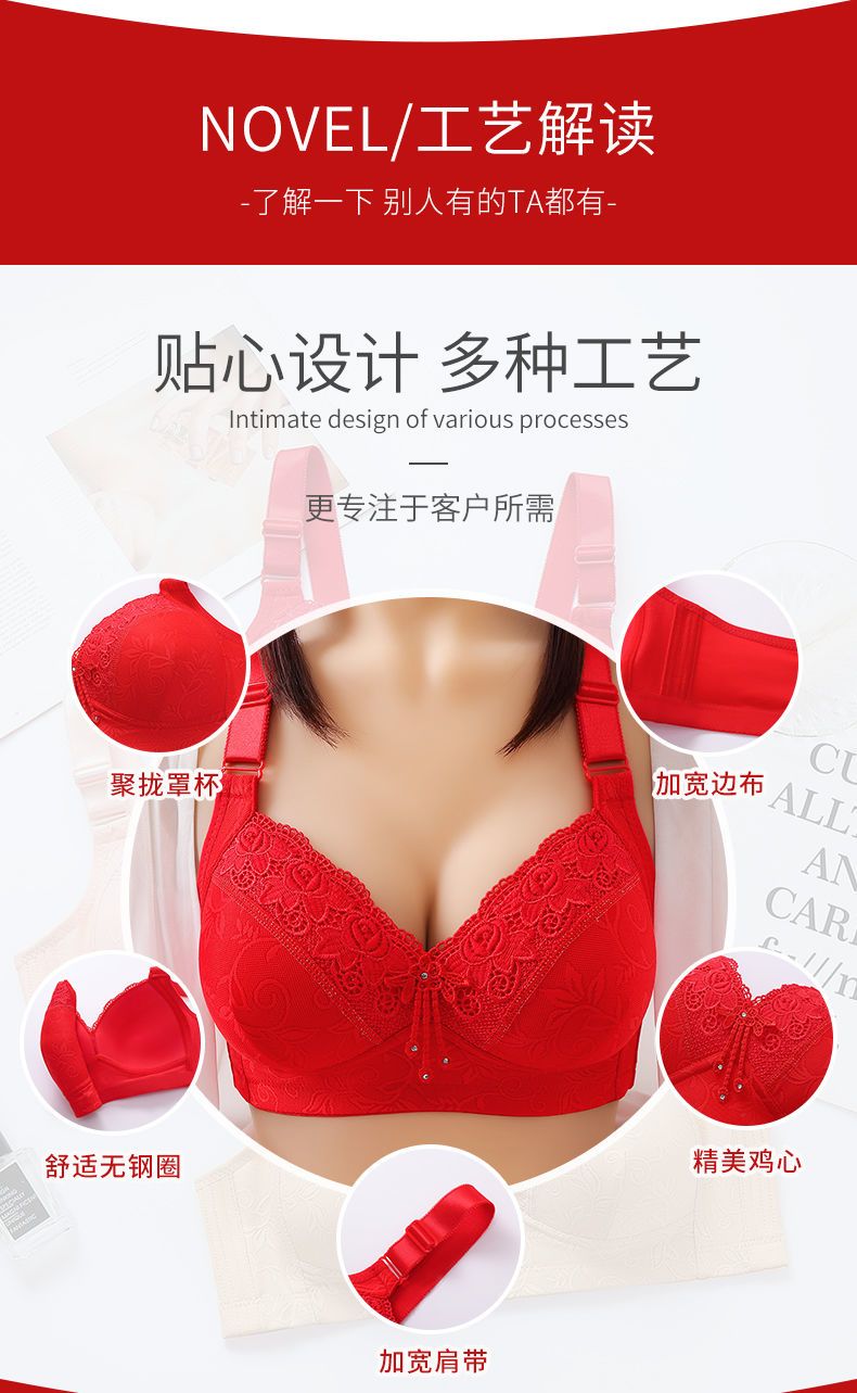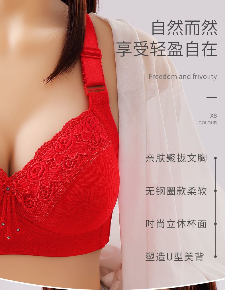 高档舒服型大码聚拢内衣防下垂性感美背无钢圈收副乳女士妈妈胸罩