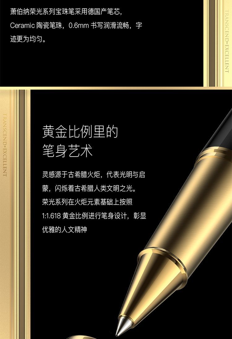 萧伯纳签字笔荣光开尔文黑金属重感宝珠笔商务高档刻字定制签名笔