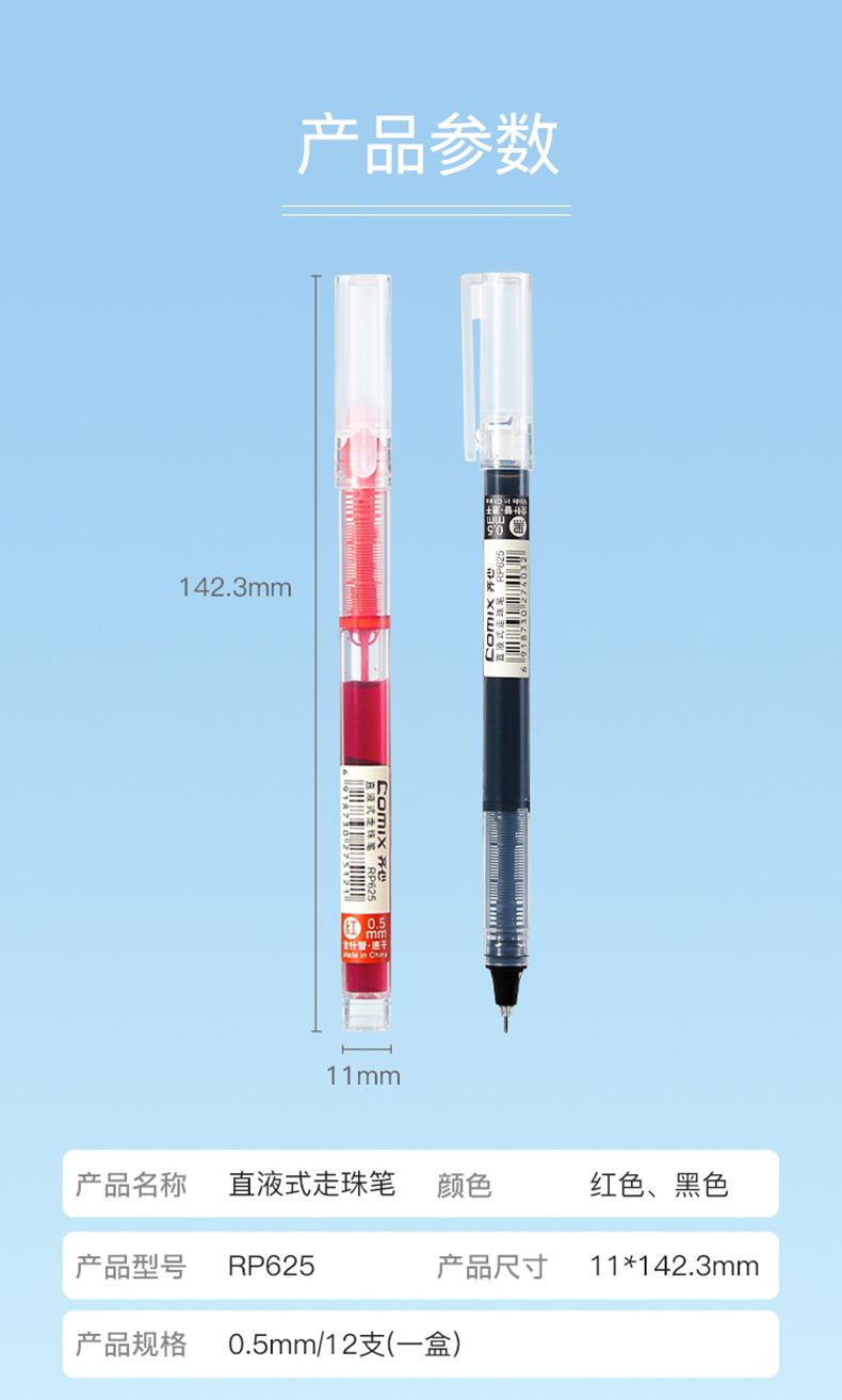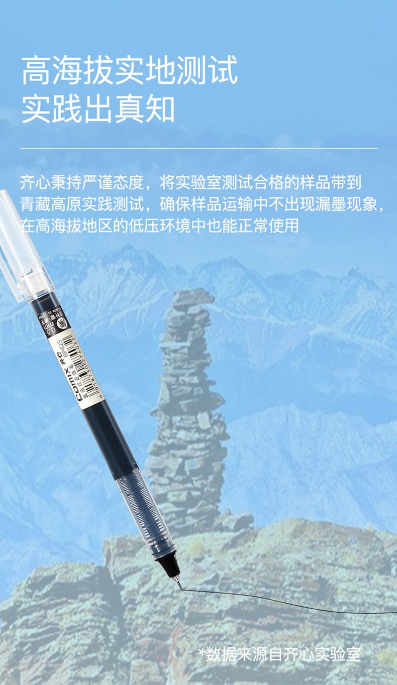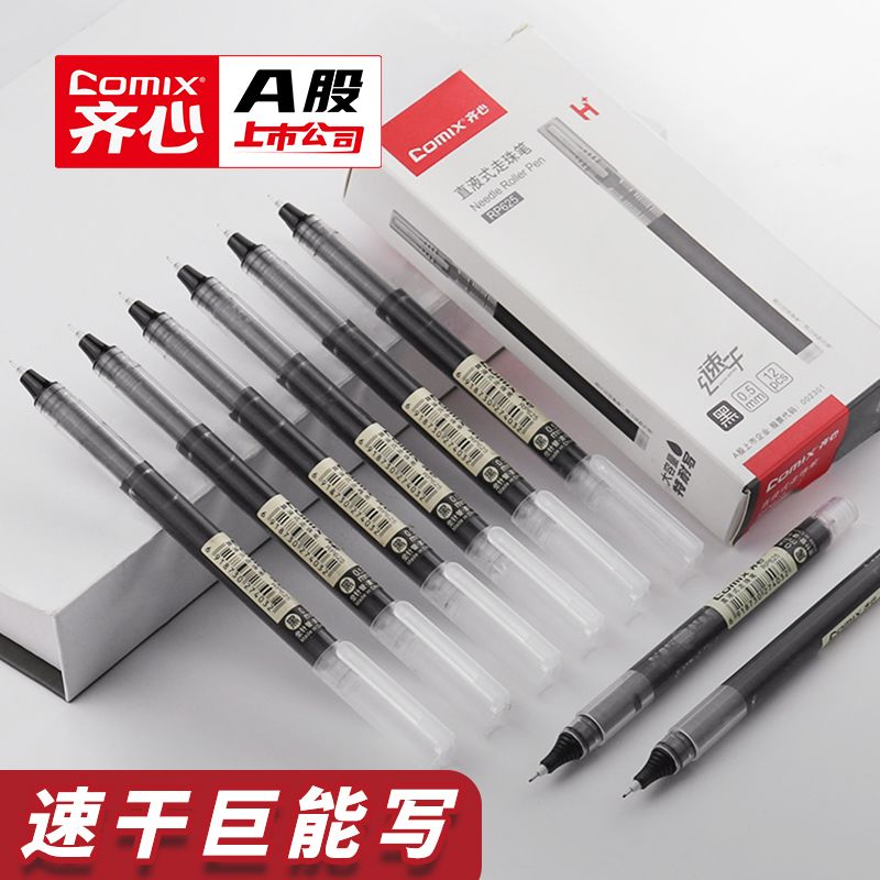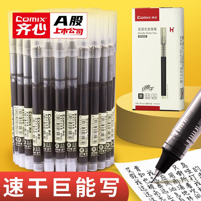 齐心速干直液笔大容量学生写字笔巨能写盖帽式笔直液式走珠笔黑