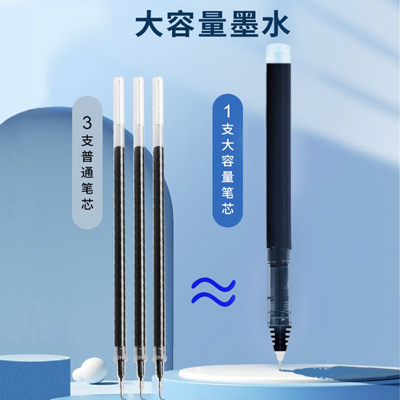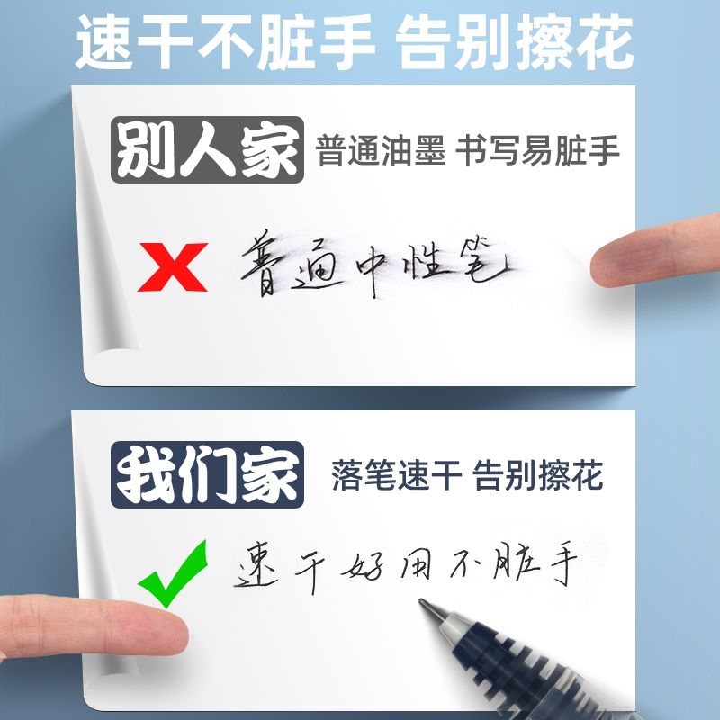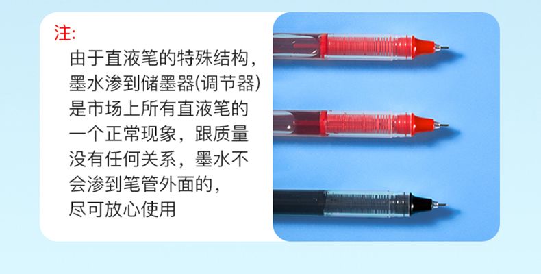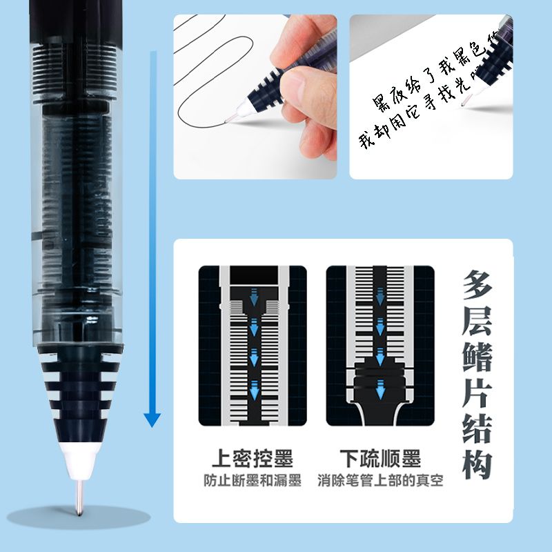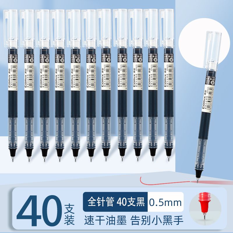 齐心速干直液笔大容量学生写字笔巨能写盖帽式笔直液式走珠笔黑