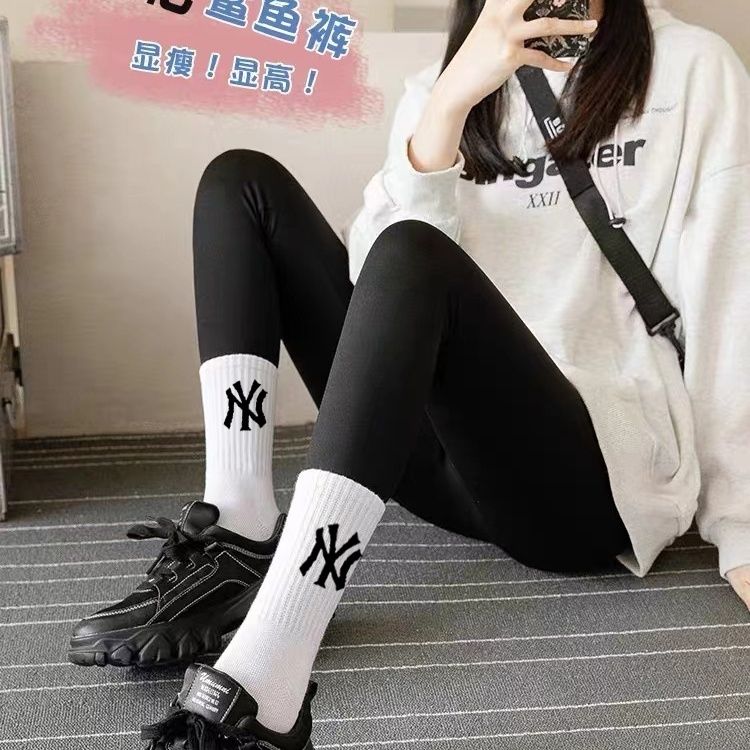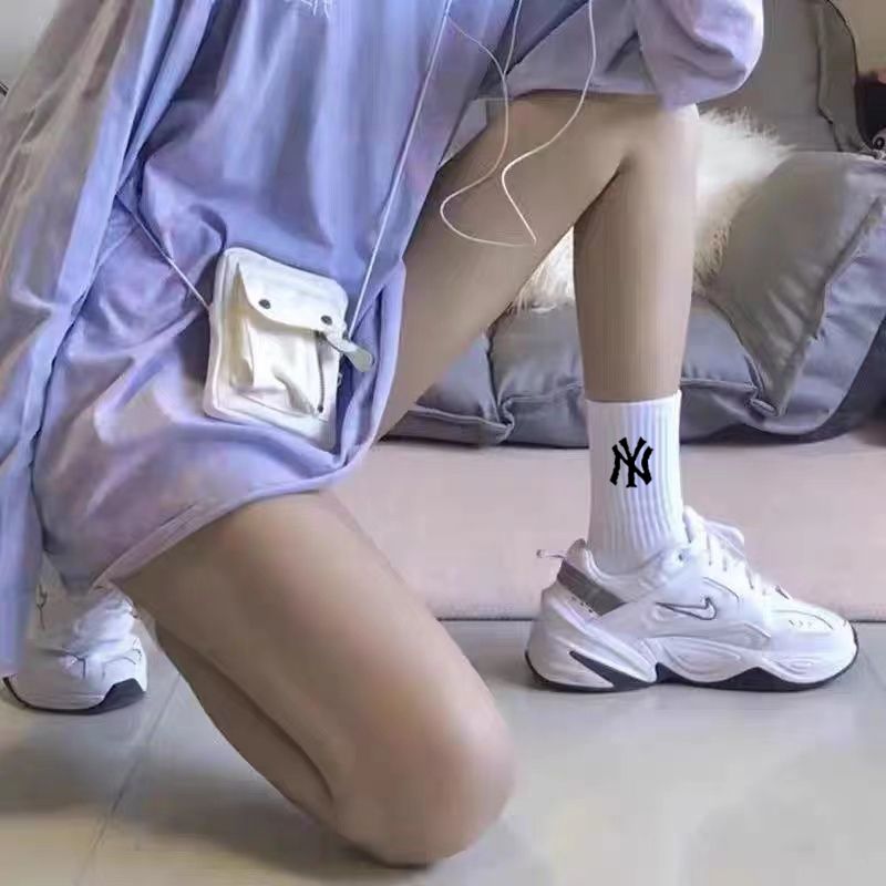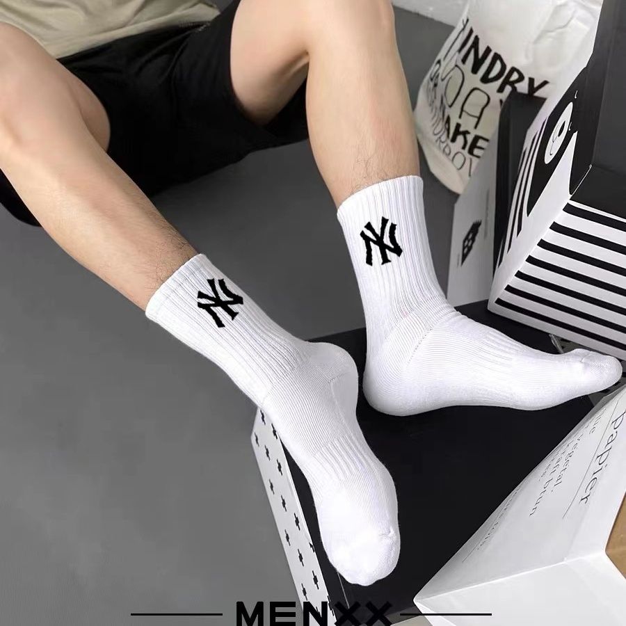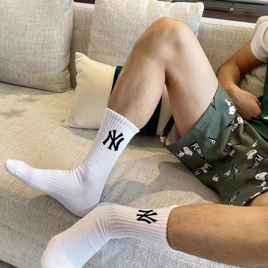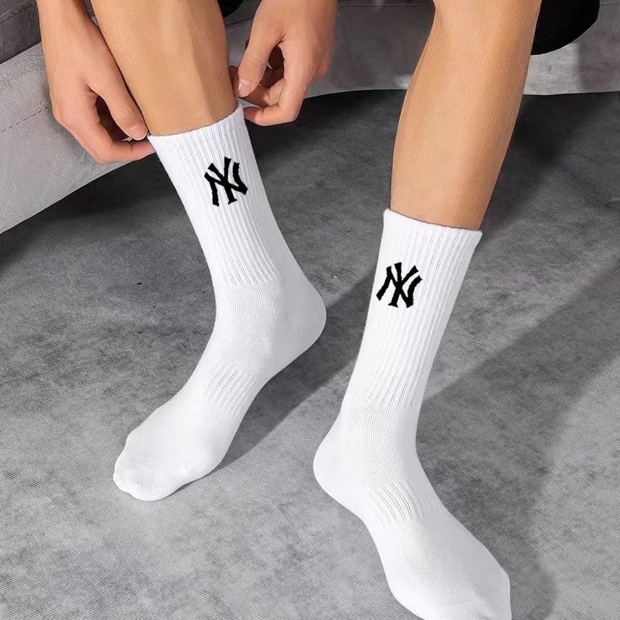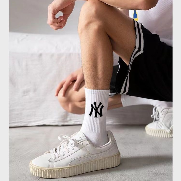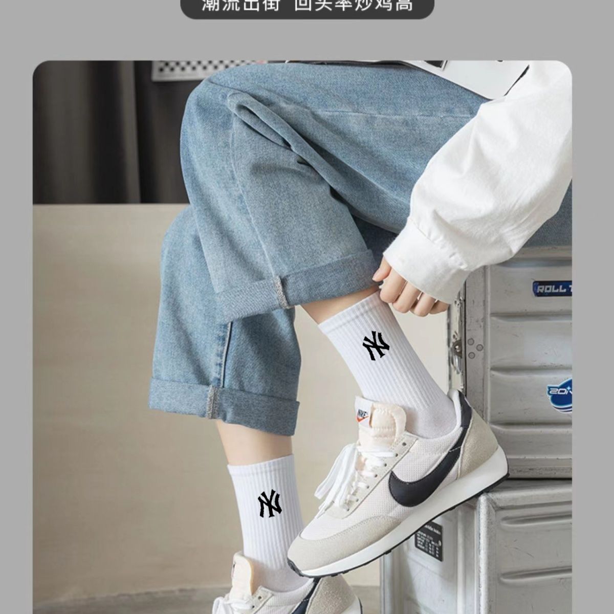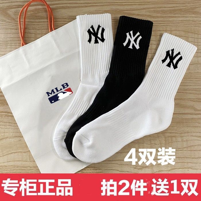 4双ML袜子男女夏季款中长筒纯棉吸汗LY潮流时尚白色黑色男女同款
